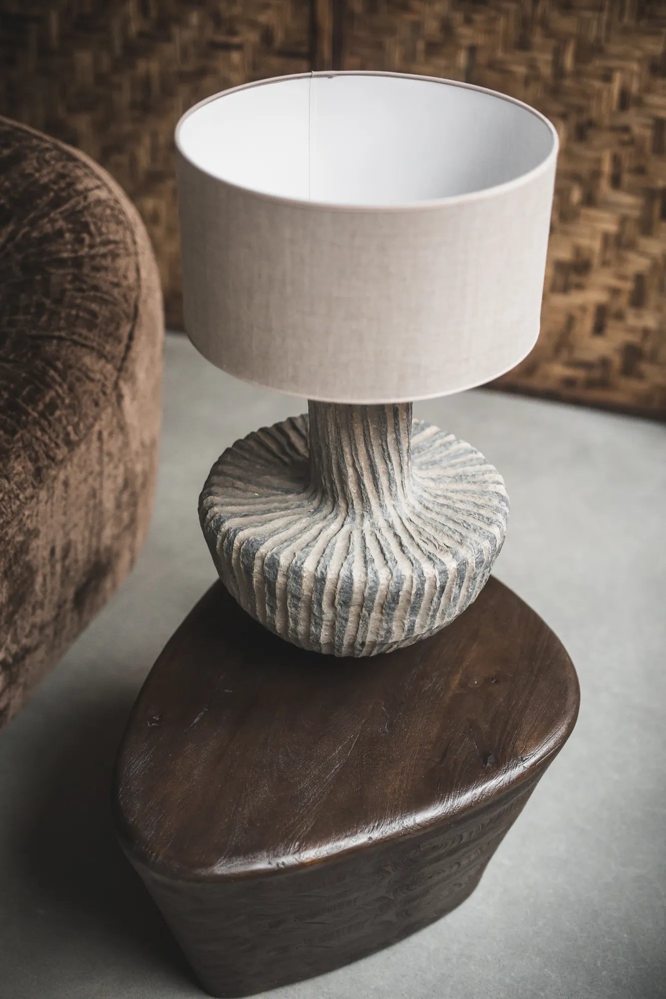 Välkommen till en värld av belysningens magi med vår abstrakta lampa i papier-maché - Lumi! Denna fantastiskt unika skapelse kommer att softa upp ditt hem med sitt personliga utseende och lekfulla design. Lumi har en mjuk och rundad form vilket bara bidrar till ett ytterligare soft uttryck till rummet. Medföljande lampskärm ger Lumi den perfekta touchen av elegans och stil. Lampskärmen kompletterar den abstrakta formen på ett subtilt sätt och ger ett mjukt och behagligt ljus till ditt rum. Låt Lumi belysa ditt liv med sin skönhet och värme! Då lampfoten är gjord av papier-maché tål den inte vatten och ska därför inte rengöras med en våt trasa.