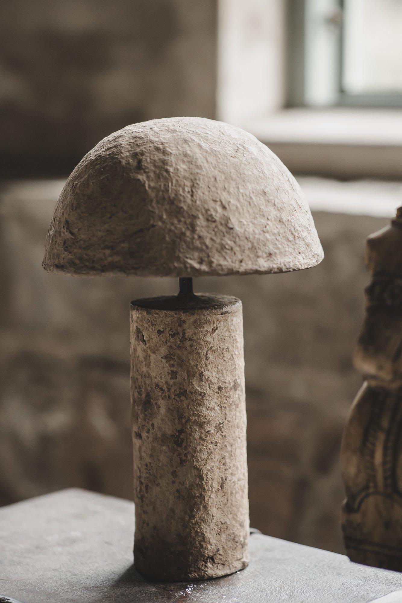Deva, en bordslampa som inte bara lyser upp rummet utan även tillför en naturlig charm och karaktär. Inspirerad av naturens egna former är Deva svampformad och tillverkad i papier-mâché, vilket ger den ett unikt och organiskt utseende. Med sitt mjuka och varma ljus sprider Deva en känsla av lugn och hemtrevnad. Den rustika känslan som lampan ger skapar en atmosfär av naturlig skönhet och harmoni i rummet. Oavsett om den placeras på ett sidobord i vardagsrummet, på nattduksbordet bredvid sängen eller som en fin dekor på en hylla, kommer Deva att bli en favorit i många hem. Då lampan är gjord av papier-maché tål den inte vatten och ska därför inte rengöras med trasa, utan lätt dammas av.