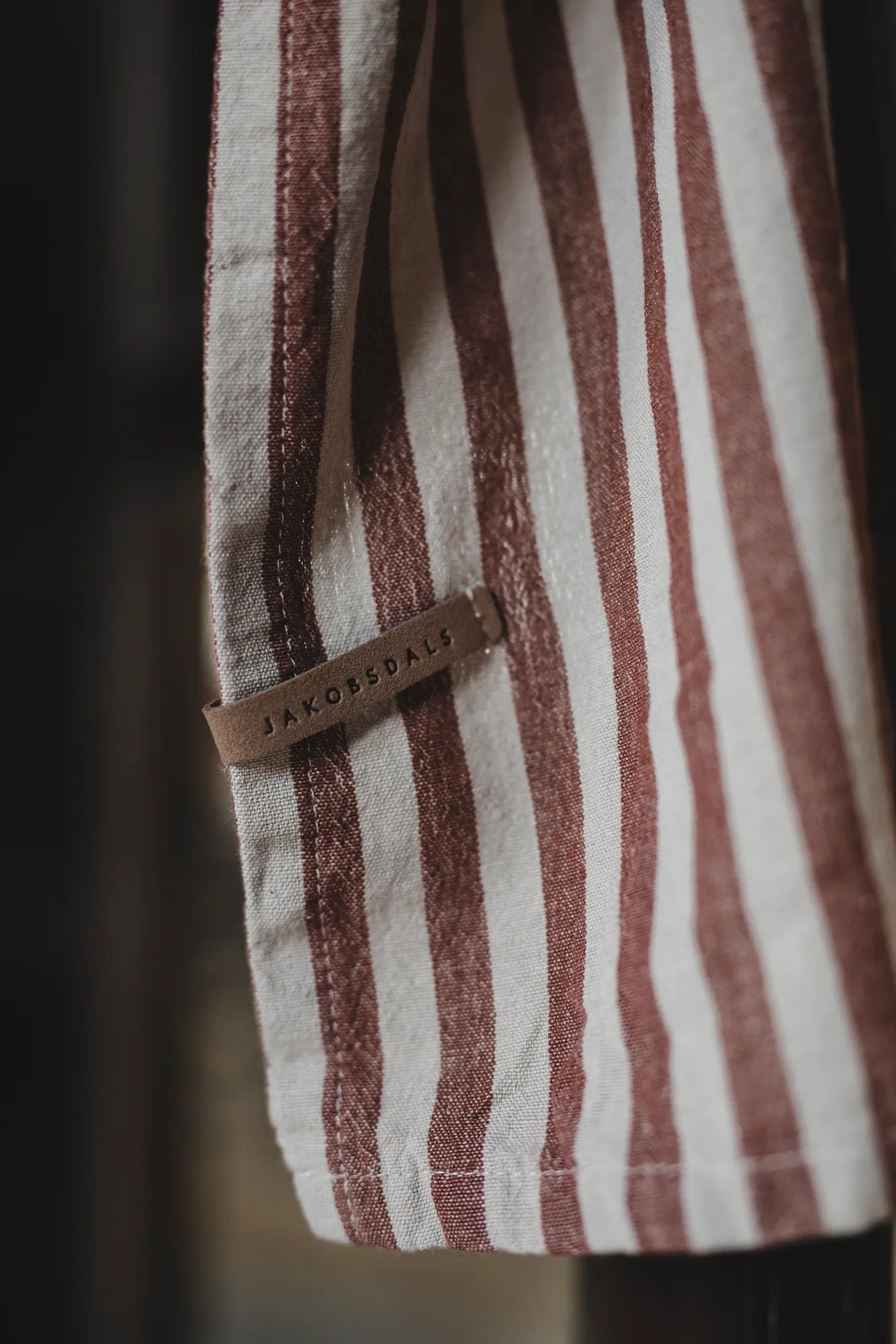 Ge både dig och ditt kök stil och funktion med Cuisine, ett vackert randigt förkläde som kombinerar tidlös design med praktiska detaljer. Med sina härliga ränder blir detta förkläde en både dekorativ och funktionell detalj som kompletterar din köksinredning på ett harmoniskt sätt. De klassiska ränderna ger en fräsch, stilren känsla som passar både i ett rustikt kök och ett modernt hem. Cuisine är mer än bara ett praktiskt plagg - det är en stilren detalj som lyfter din närvaro i köket och gör matlagningen till en ännu mer njutbar upplevelse.