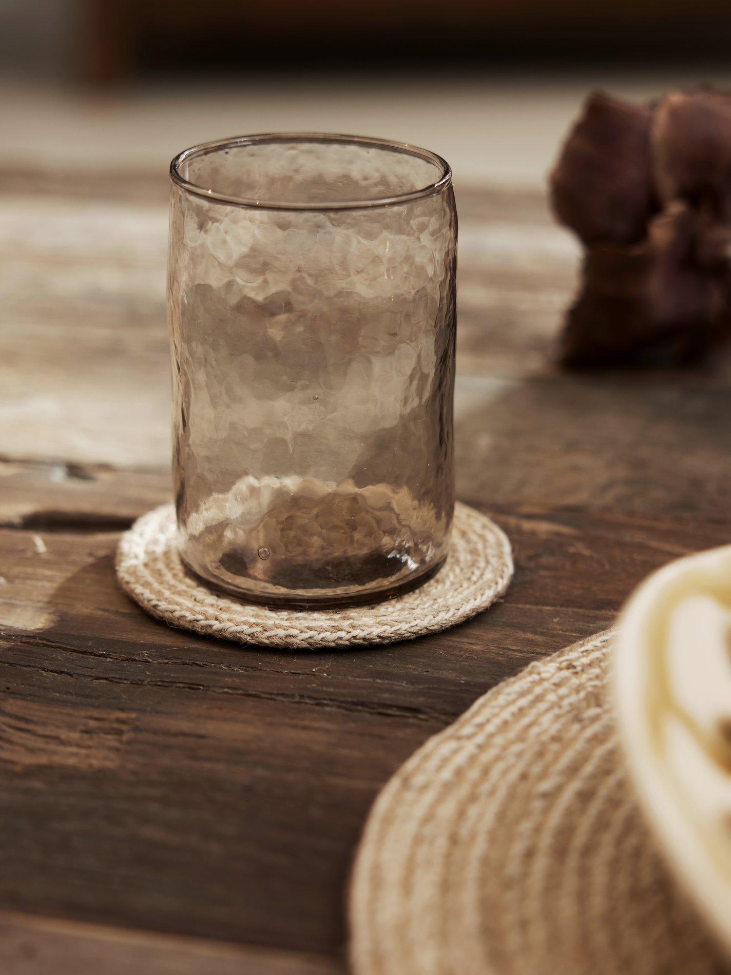 Miriam är ett rustikt men stilrent glasunderlägg som kombinerar funktion med tidlös design. Tillverkat i 100 % återvunnen bomull är det ett hållbart val för det medvetna hemmet. Med sin naturliga färgton och taktila struktur tillför Miriam en varm och ombonad känsla till varje dukning. Det skyddar ytor från ringar och spill, samtidigt som det blir en vacker detalj i sig. Den jordnära paletten gör det enkelt att kombinera med andra textilier och dukningstillbehör. Litet i format - stort i intryck. Miriam är helt enkelt ett måste på bordet.