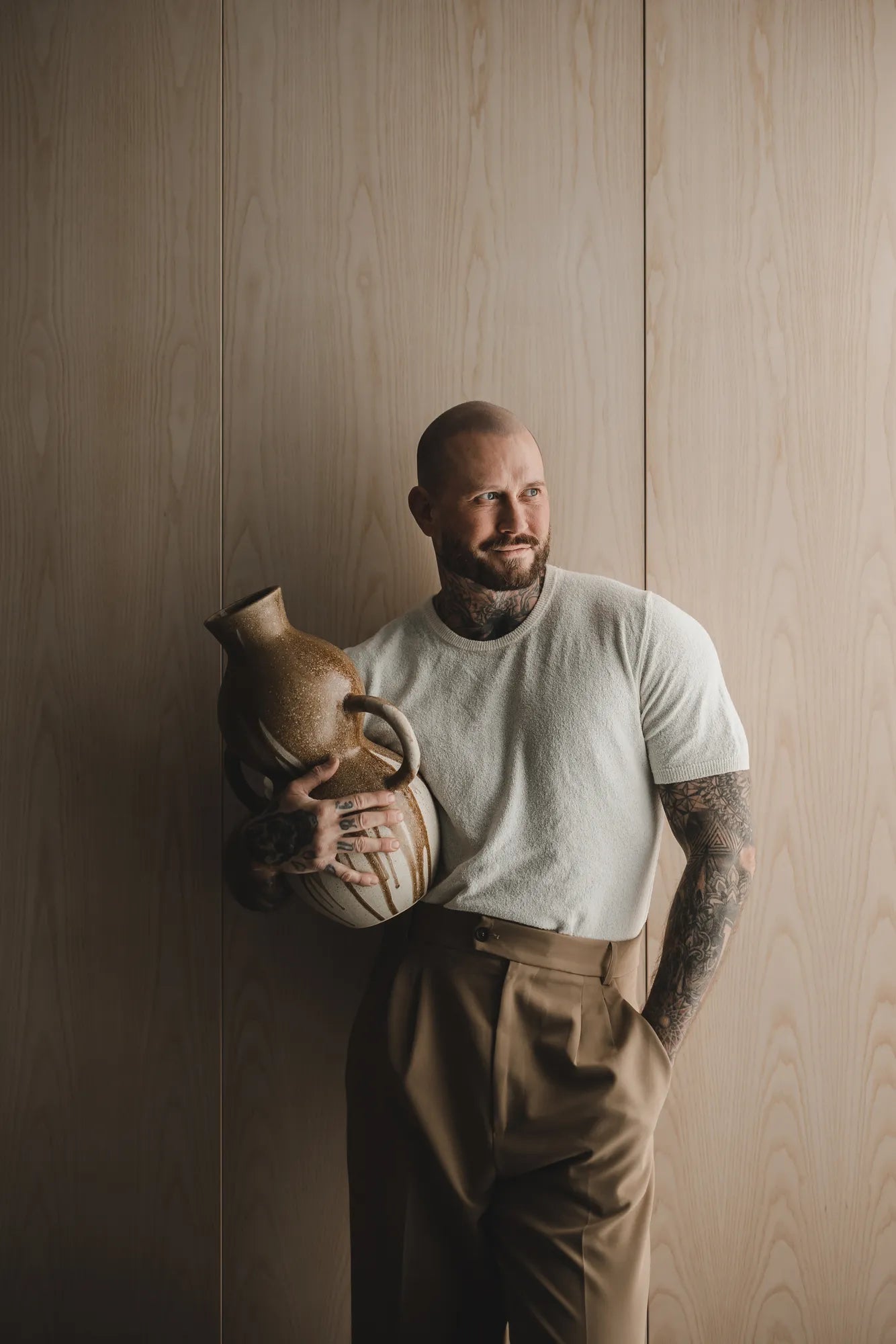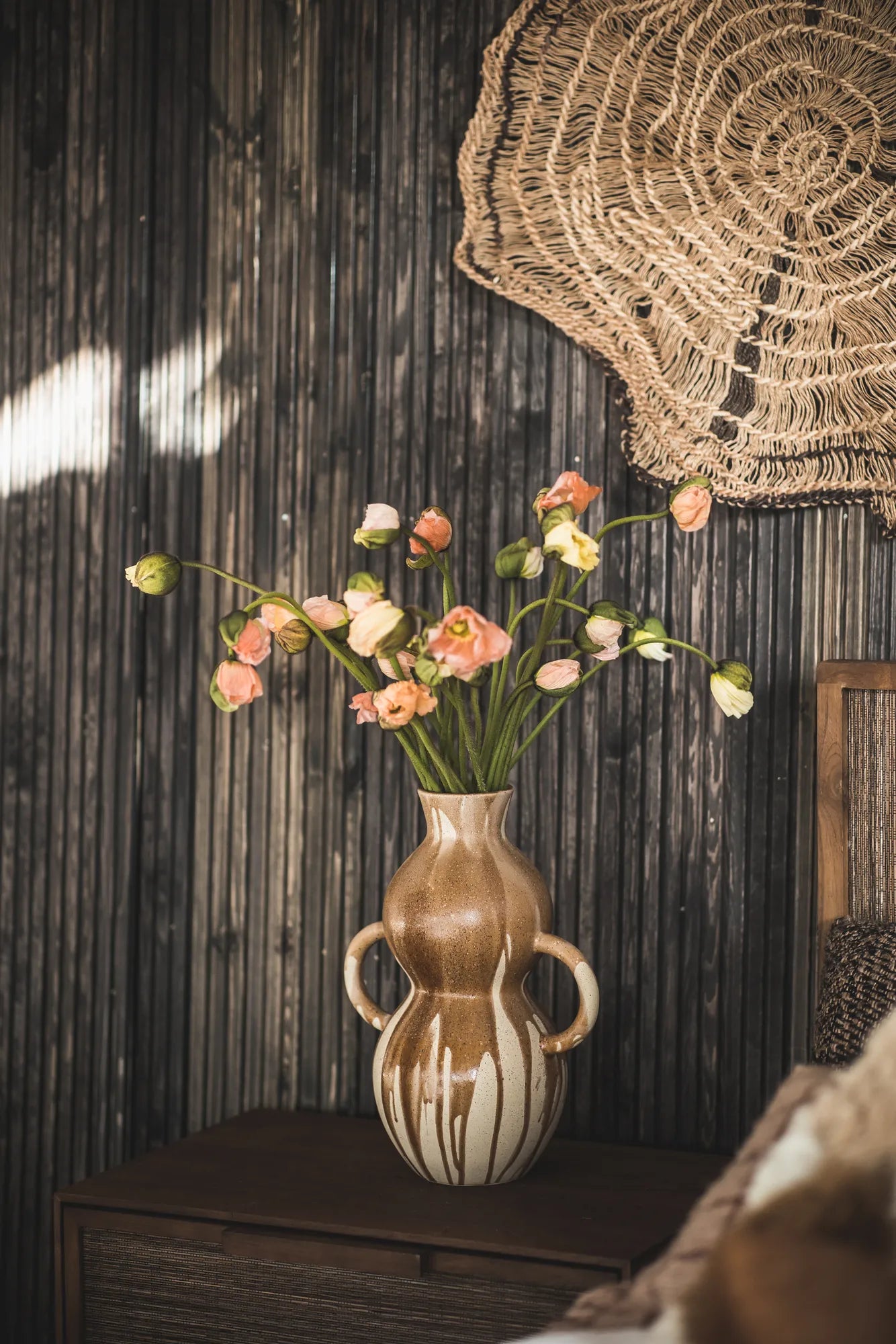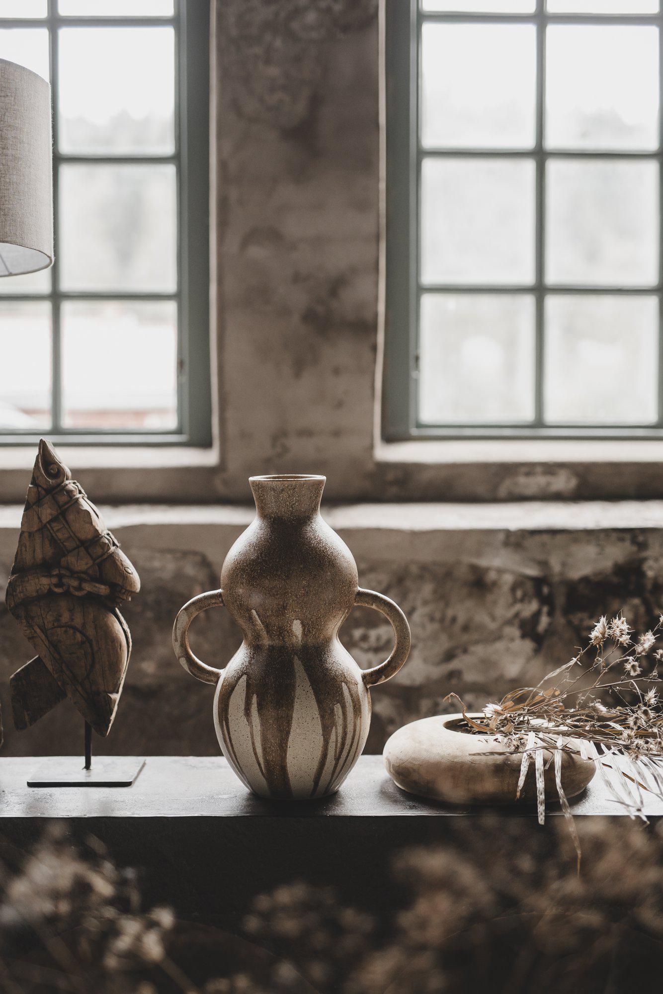 Låt Imani bli kronan på verket i ditt hem med sin vackra design och eleganta touch. Denna stengodsvas är skapad för att förhöja din inredning med en perfekt kombination av skönhet och funktionalitet. Med ett smakfullt handtag på vardera sida får Imani en förtrollande och elegant look, vilket ger vasen en karakteristisk charm. Imanis rustika estetik ger den en tidlös skönhet som smälter in i olika inredningsstilar. Tillverkad av högkvalitativt stengods, strålar Imani av autenticitet och hållbarhet. Varje detalj, från handtagen till den konstnärliga ytan, är utformad med precision för att skapa en vas som inte bara fångar ögat utan också blir en långvarig favorit. Den här produkten är en del av Jakobsdals kollektion tillsammans med den visionära kreatören och designern Storm Storm.