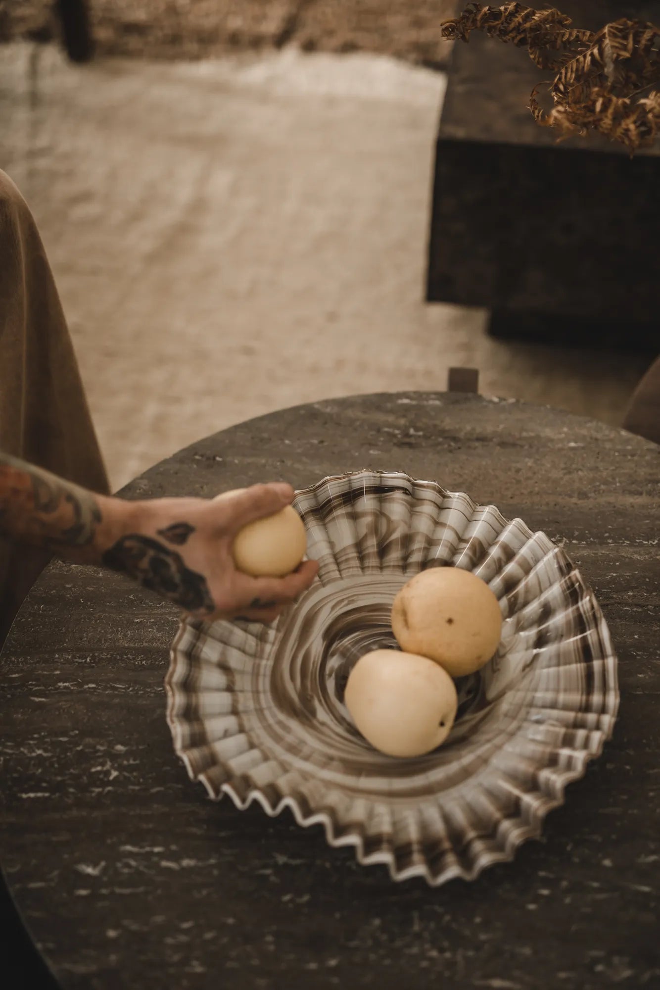 Förundras över skönheten hos vår vackra och organiskt formade glasskål, Organza - en konstnärlig skapelse som påminner om en vacker karamell både i färg och design. Denna brunfärgade skål, med sina subtila ränder, ger en visuell symfoni av vackra konstraster, vilket gör varje ögonblick till en föreställning i elegans. Organza är inte bara en skål, det är ett konstverk som utstrålar en omisskännlig känsla av lyx och skönhet. Dess organiska form och diskreta ränder skapar en förtrollande harmoni som för tankarna till vackert prydnadsglas. Den eleganta bruna färgen ger Organza en tidlös och varm karaktär, vilket gör den till en perfekt prydnad för olika inredningsstilar. Oavsett om den används som en dekorativ skål, ett konstverk eller som en elegant serveringsmöjlighet, kommer Organza att sätta en touch av exklusivitet och sofistikation i varje rum. Den här produkten är en del av Jakobsdals kollektion tillsammans med den visionära kreatören och designern Storm Storm.