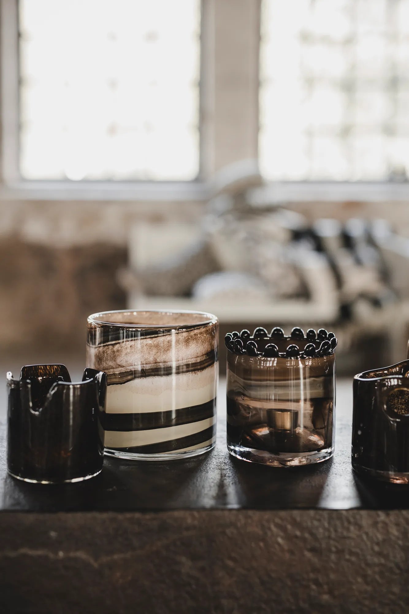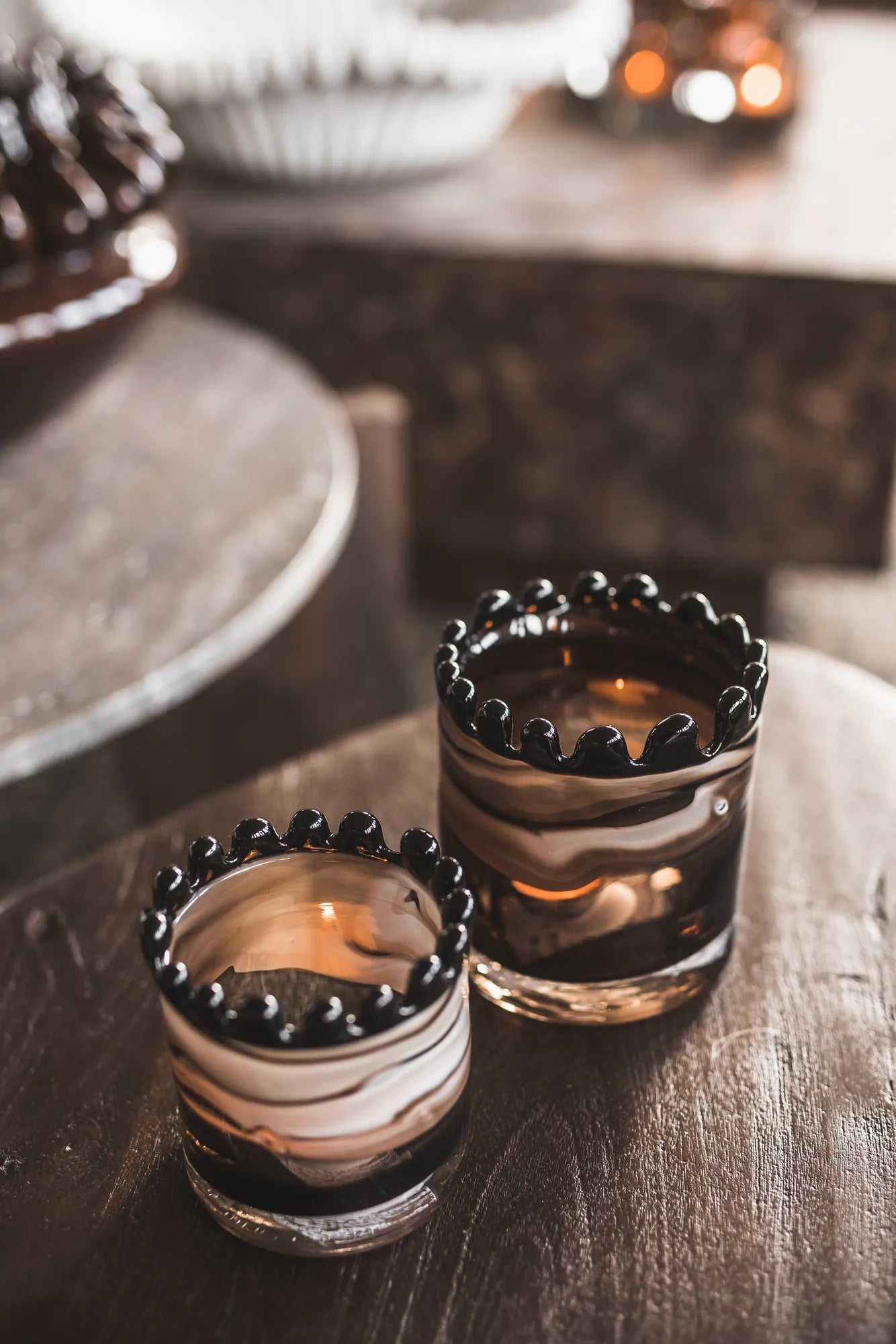 Dolce är en unik och handgjord ljuslykta som förenar konstnärlighet och funktionalitet på ett unikt sätt. Varje centimeter av dess yta är genomträngd av kurviga och organiska ränder, vars skönhet nästan liknar en god chokladbakelse. Denna ljuslykta är inte bara ett föremål för praktisk användning utan också en källa till estetisk njutning. De mjuka och följsamma linjerna på Dolces yta ger intrycket av rörelse och dynamik, vilket sprider liv och glädje till hela rummet. Ljuslyktans kant pryds av små, runda glaskulor som ger den en extra dimension av elegans och charm. Dessa detaljer är som pricken över i:t och ger Dolce en härlig lekfullhet.