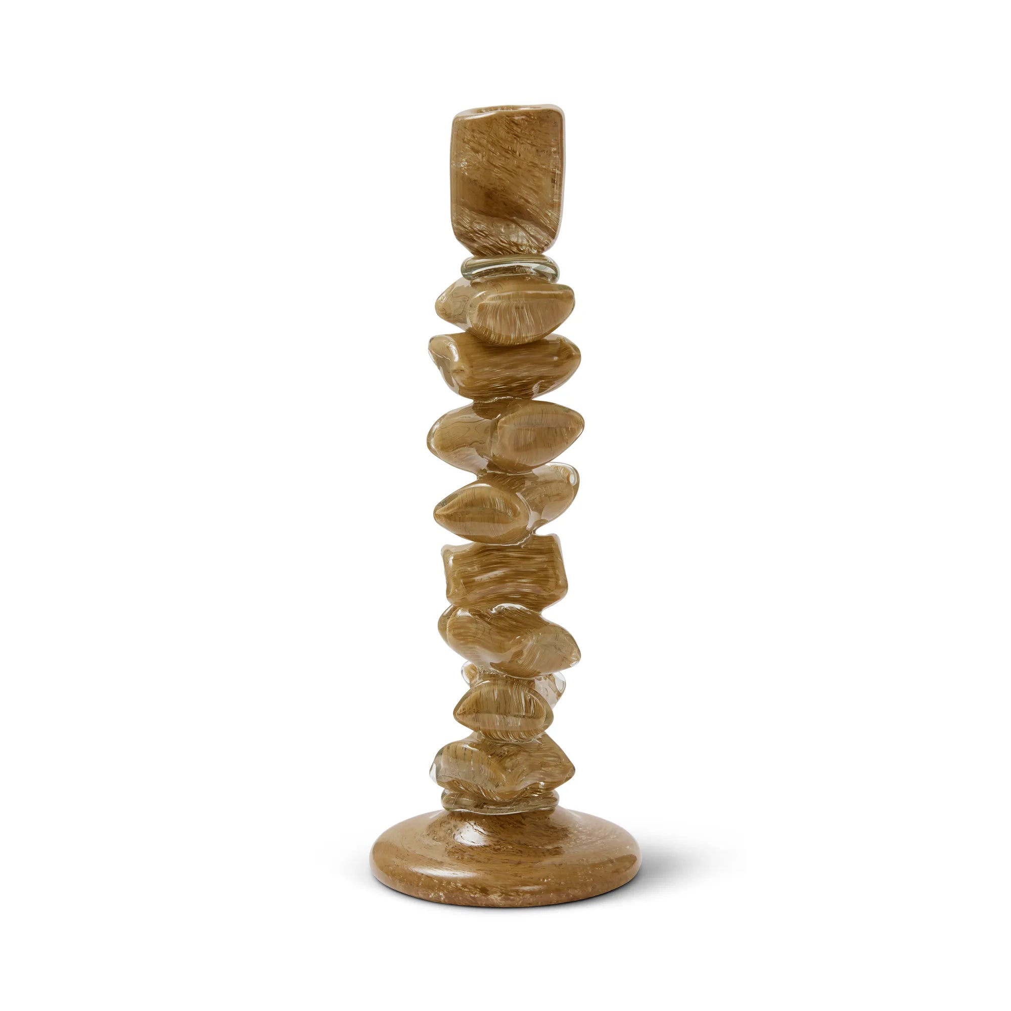 Carmella - en handblåst ljusstake som smälter in och sticker ut! Möt Carmella, ljusstaken som förvandlar ljusets plats till ett konstverk. Med sin chunky form och med sina mjuka, lekfulla siluetter ser Carmella nästan ut som om lena karameller har staplats ovanpå varandra - ett harmoniskt möte mellan skulptur och funktion. Den abstrakta designen gör Carmella till ett uttrycksfullt inslag i rummet, samtidigt som dess rundade former skapar en inbjudande känsla. Den passar lika fint på det dukade bordet som på en hylla där den får stå för sig själv och glänsa. Carmella är mer än en ljusstake - det är ett leende i inredningen.