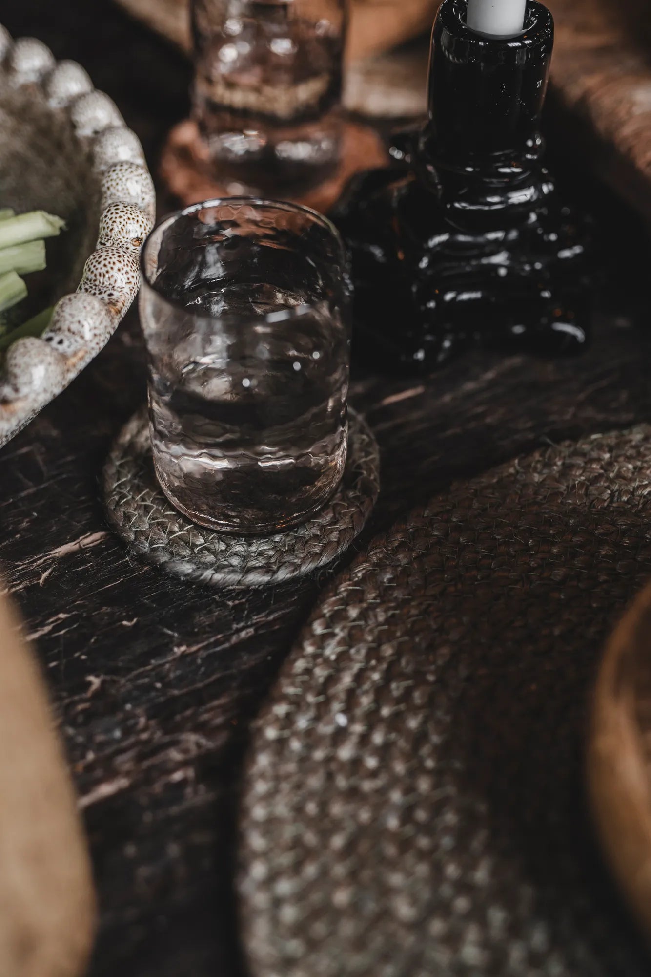 Introducera elegans och konstnärlighet till din servering med glaset Pure – en vacker addering till ditt kök. Detta glas i 7x10 cm, är inte bara ett glas för olika drycker, utan också en snygg inredningsdetalj. Pure utmärker sig med en hamrad textur, där varje centimeter av ytan har blivit omsorgsfullt behandlad och format för att skapa ett unikt och texturerat mönster. Varje detalj av detta glas bär på elegans och skapar en gripande visuell upplevelse. I en rökig brun färg utstrålar Pure en lyx och elegans som kommer att förhöja upplevelsen av dina drycker.