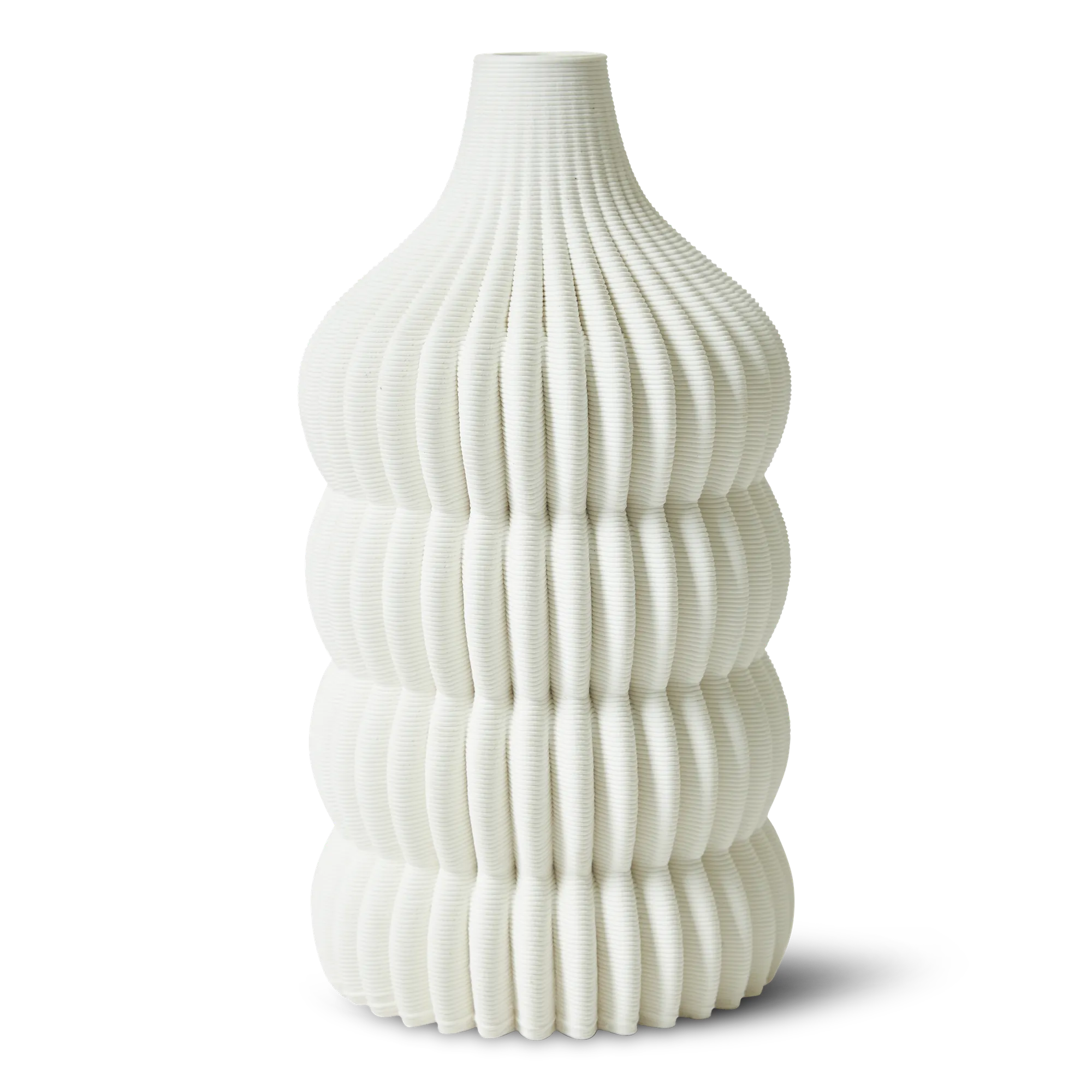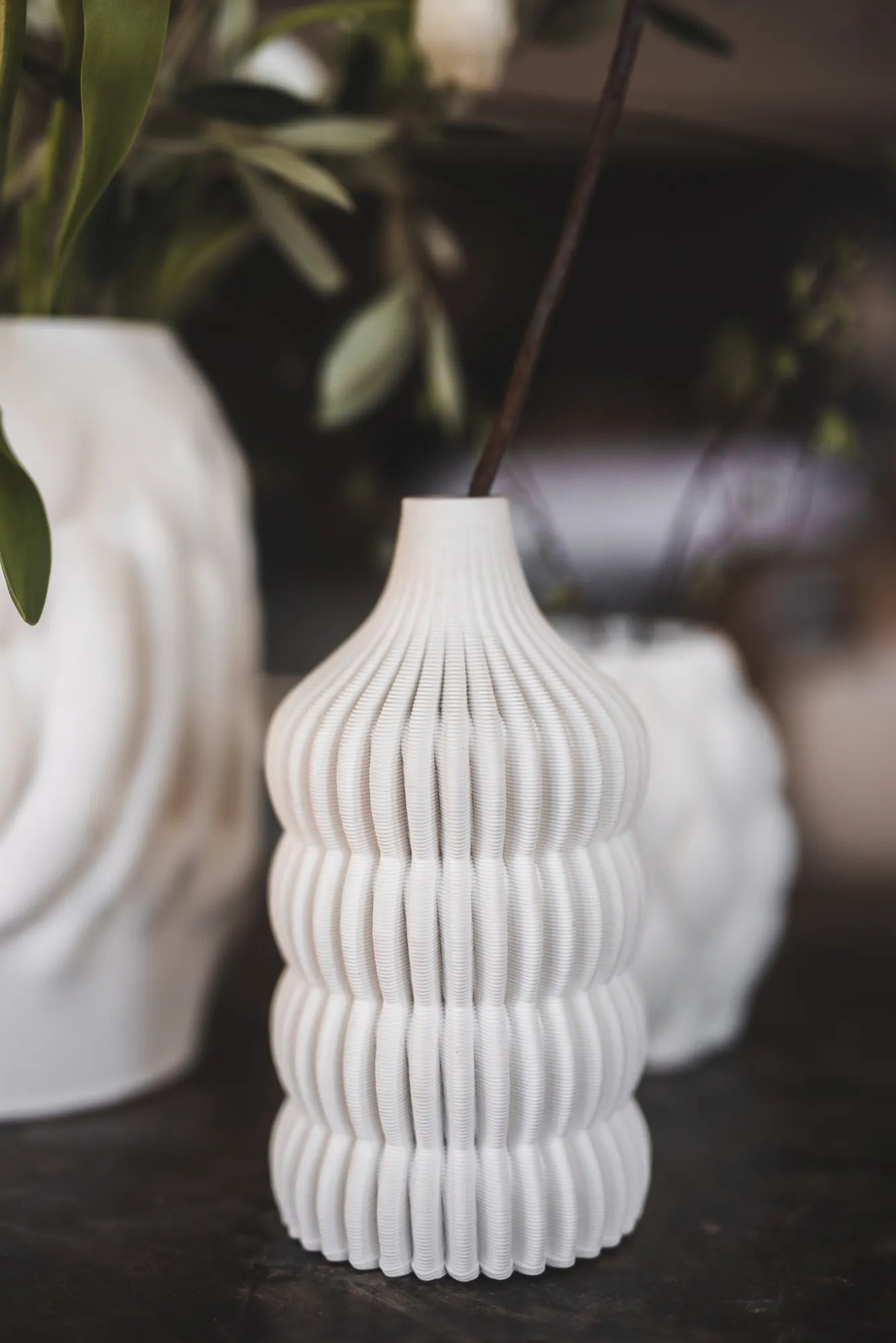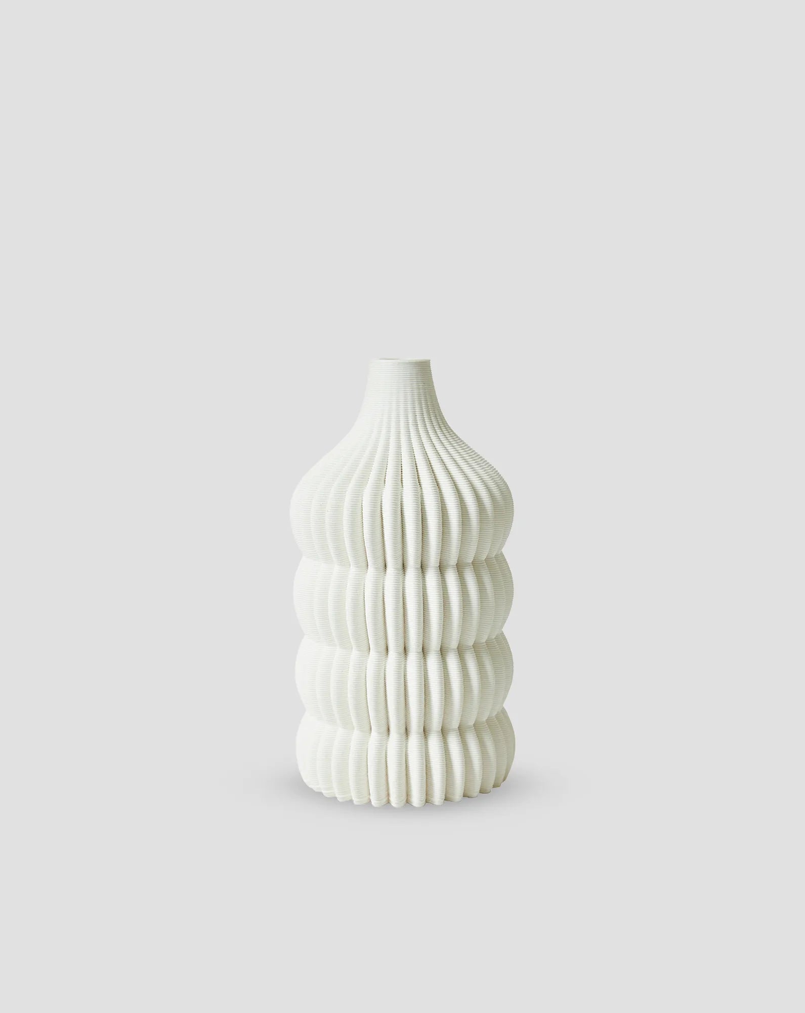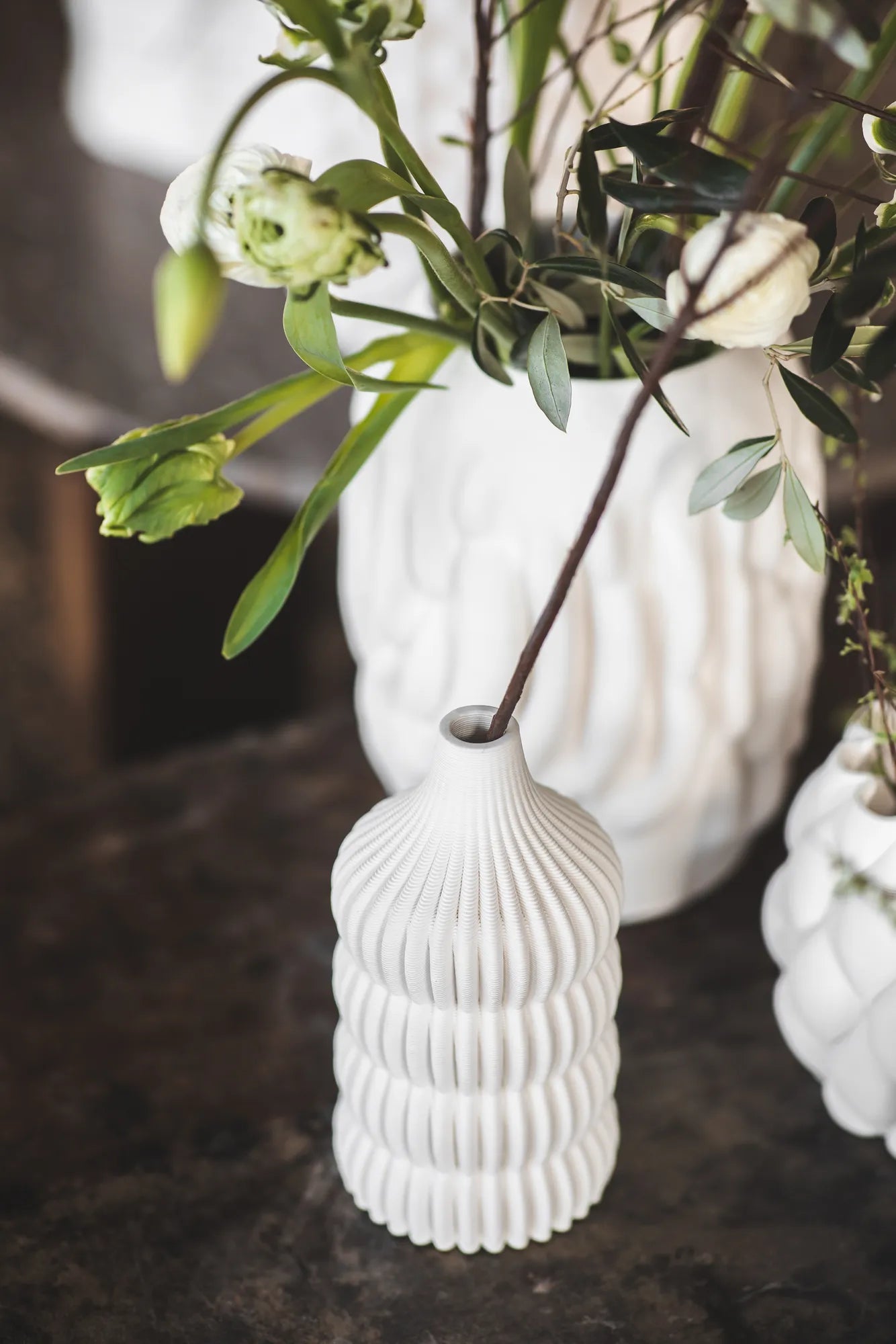 Azalea – en harmonisk fusion av modern teknik och naturinspirerad elegans. Denna vas i 10.5x10.5x20.5 cm är inte bara behållare, det är en hyllning till konstnärskap och innovation. Tillverkad med precision med hjälp av avancerad 3D-printningsteknik, visar Azalea en delikat, organisk design som hämtar inspiration från naturens skönhet. Den vita keramiska ytan lägger till en touch av renhet och sofistikation till detta unika verk.