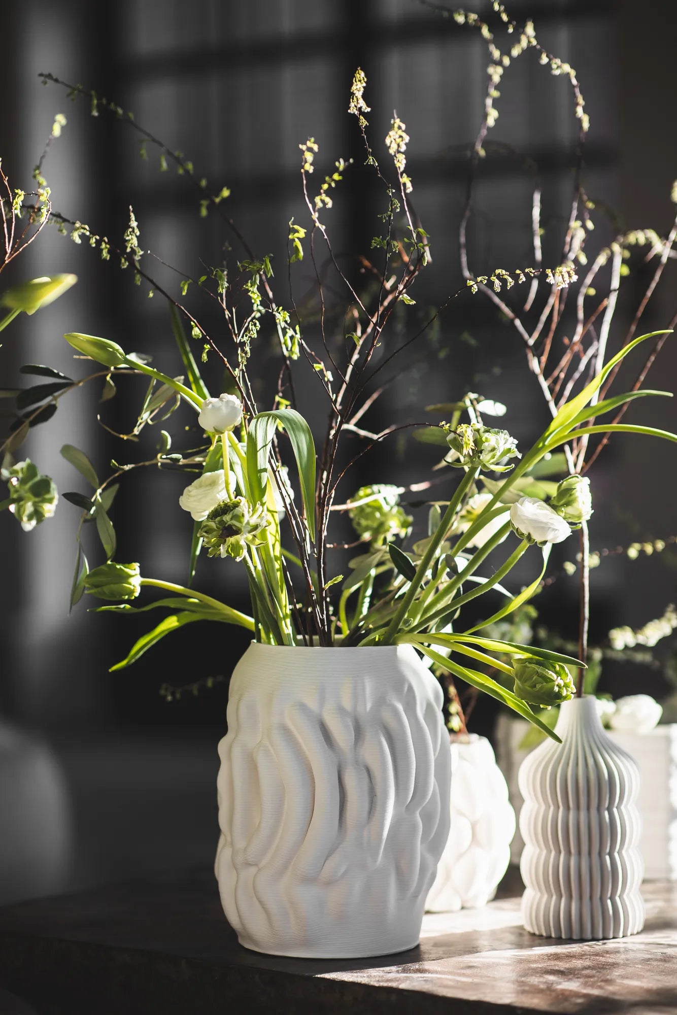 Botanica – en harmonisk fusion av modern teknik och naturinspirerad elegans. Denna vas i 19x19x26 cm är inte bara behållare, det är en hyllning till konstnärskap och innovation. Tillverkad med precision med hjälp av avancerad 3D-printningsteknik, visar Botanica en delikat, organisk design som hämtar inspiration från naturens skönhet. Den vita keramiska ytan lägger till en touch av renhet och sofistikation till detta unika verk.