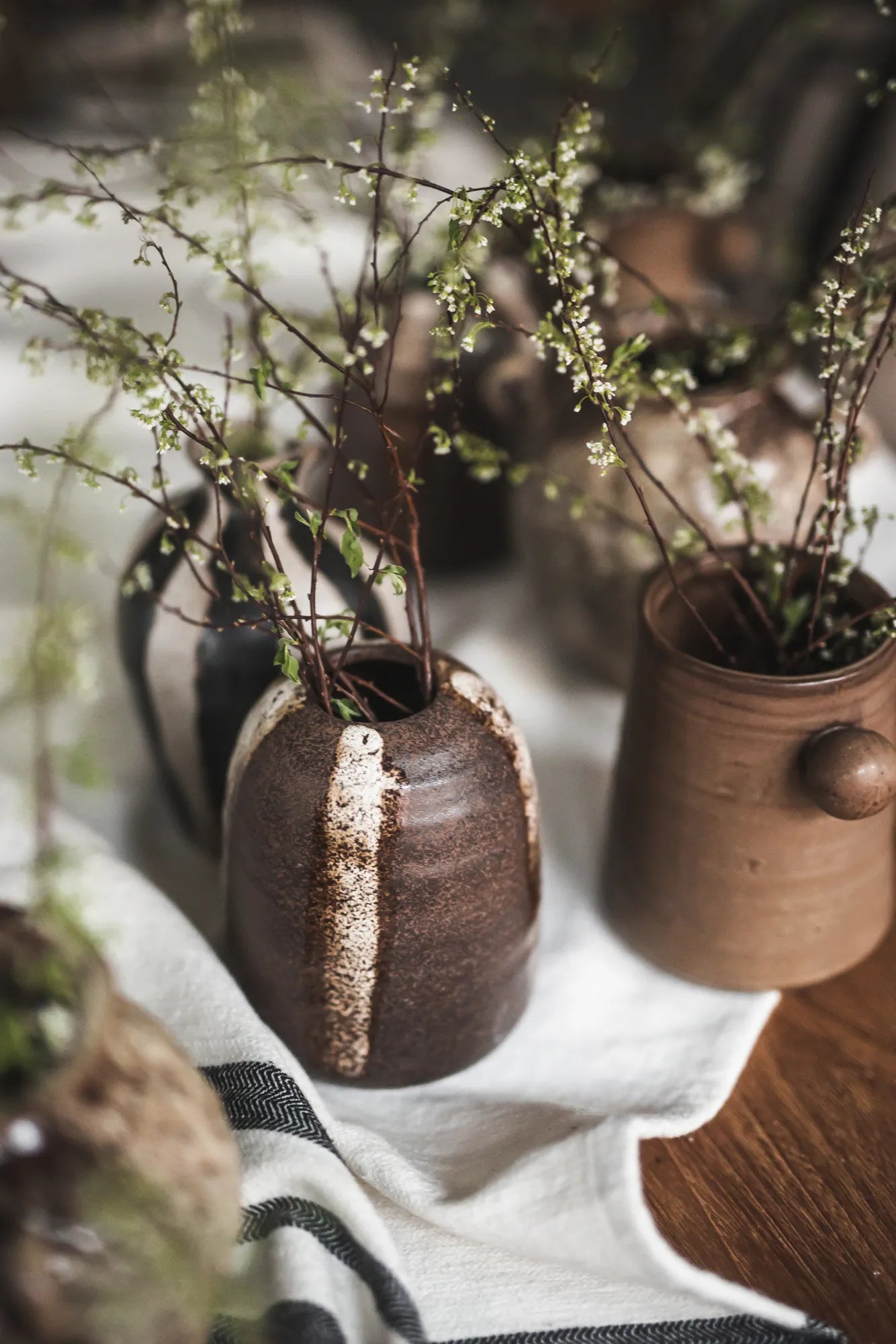 Remi vas är en konstnärlig och handgjord skapelse som utstrålar en egen karaktär och personlighet. Tillverkad av högkvalitativt stengods med reaktiv glasyr, bär den stolt på sig en spännande och råare finish som genomsyrar varje millimeter av dess yta. Då vasen har behandlats med en reaktiv glasyr innebär det att varje vas blir unik och vacker till sin finish. Remi har en modern och dynamisk design, vilket gör den till en perfekt inredningsdetalj för den som söker det extraordinära. Vasens jordnära färger gör att den passar in i många olika typer av hem – till det stilrena, det färgglada och till det bohemiska.