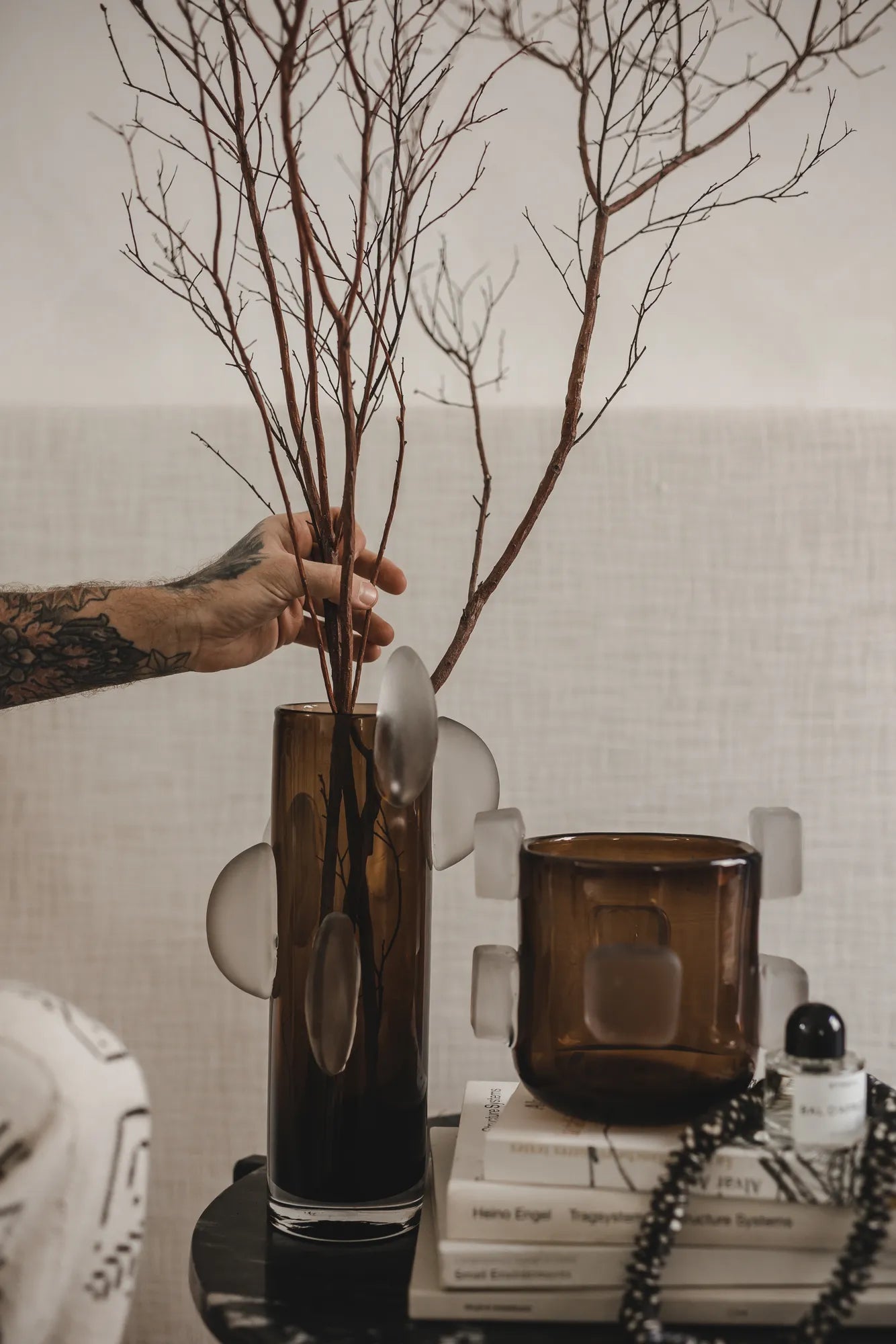 Utforska en ny dimension av stil med vår bruna glasvas, Stellar Square - en verkligt unik skapelse som utmärker sig genom sina vita fyrkanter på ytan. Denna vas är inte bara en enkel behållare för blommor, den är ett konstverk som kommer att injicera en känsla av elegans och enastående skönhet i ditt hem. Stellar Square fångar blicken med sin spännande och unika design. De vita fyrkanterna på dess yta skapar en visuellt stimulerande effekt, som ger vasen en modern och samtida estetik. Varje kvadrat är som en konstnärlig detalj, och tillsammans formar de en berättelse om innovativ design och subtil skönhet. Den här produkten är en del av Jakobsdals kollektion tillsammans med den visionära kreatören och designern Storm Storm.