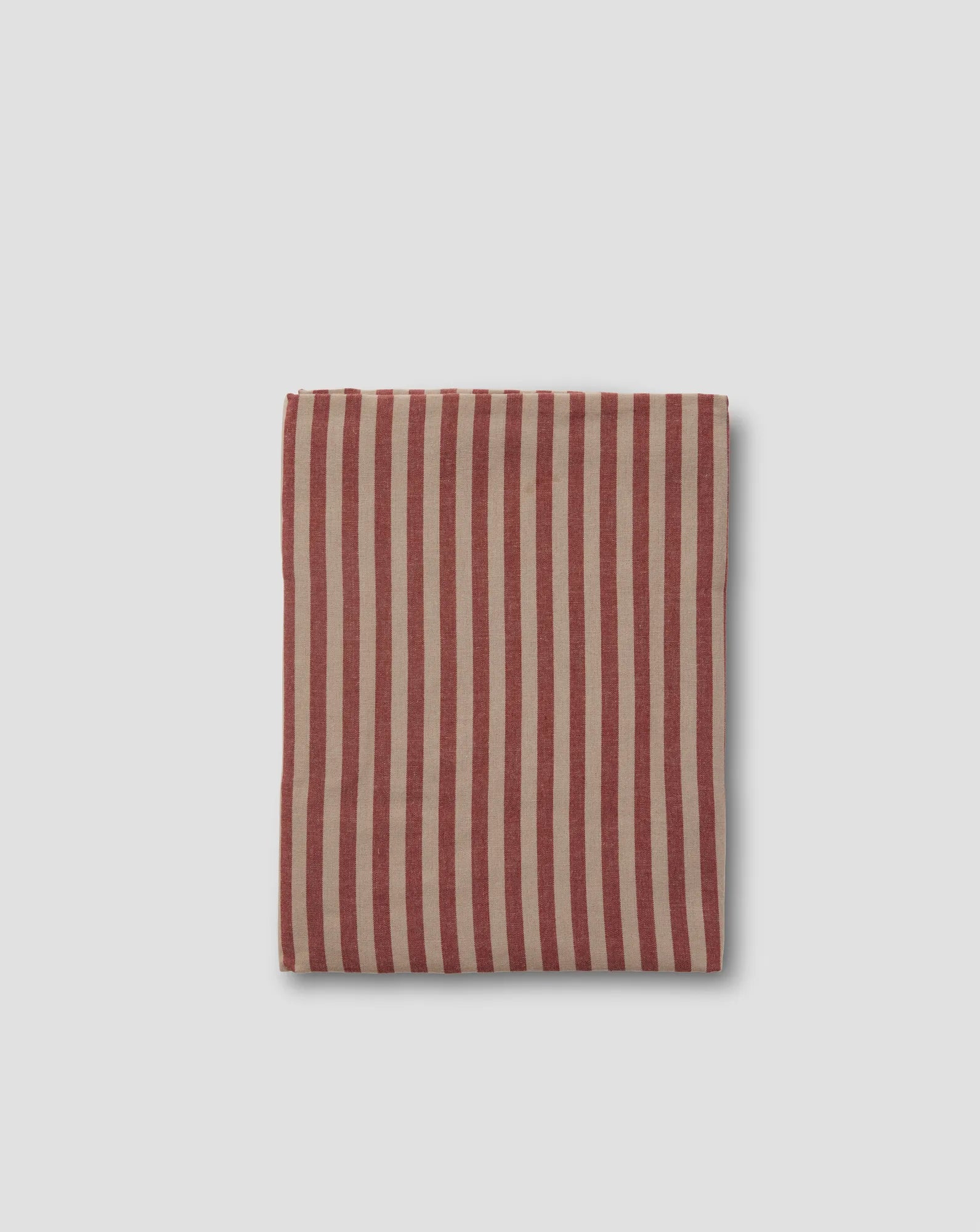 Cuisine duk är klädd i smala, röda ränder som ger bordet ett fräscht och stilrent uttryck. Det klassiska randiga mönstret för tankarna till bistrostil och skapar en inbjudande känsla oavsett om det är vardagsmiddag eller festlig dukning. Med sin tidlösa design är Cuisine lätt att matcha med både enfärgade textilier och mönstrade detaljer. En duk som förenar funktion och charm - och som gör varje måltid lite mer inspirerande.