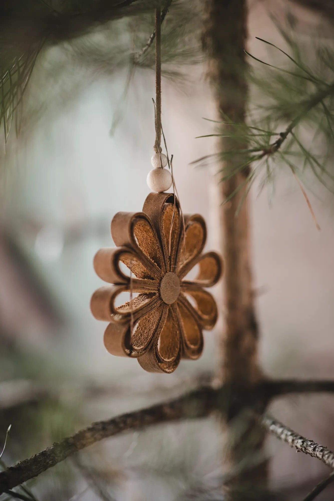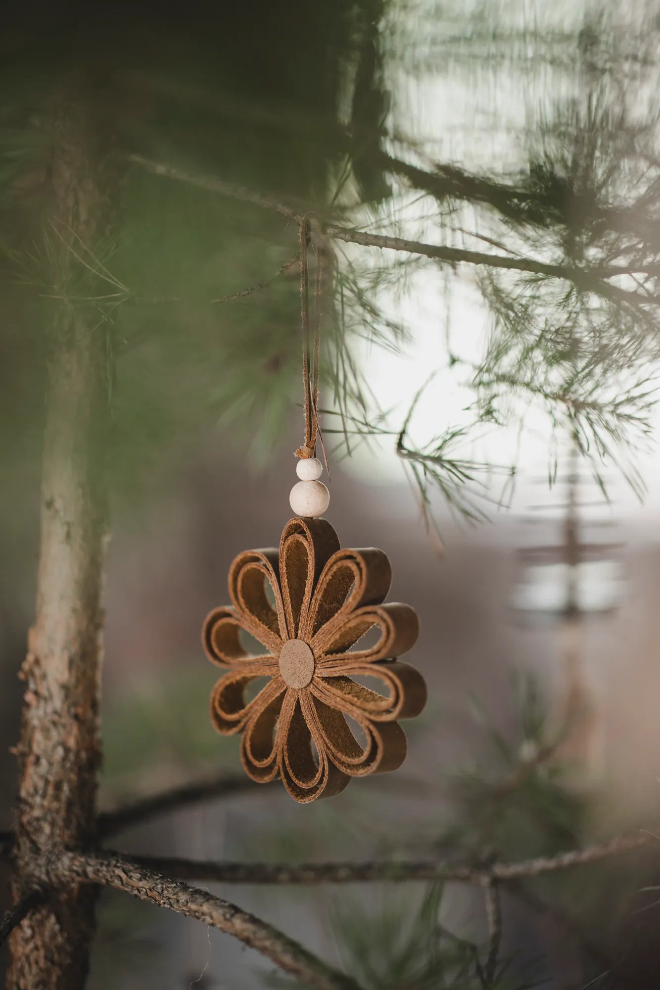 Ge din julgran en unik och stilfull touch med detta julgranshänge i läder. Formen av en blomma, med sina vackra detaljer i läder, ger en tuff och modern twist på den traditionella julkulan. Detta exklusiva julgranshänge är mer än bara en julgransdekoration - det är en konstnärlig och hållbar prydnad som sprider både design och personlighet. Perfekt för dig som vill ha något annorlunda och samtidigt skapa en mysig julstämning.