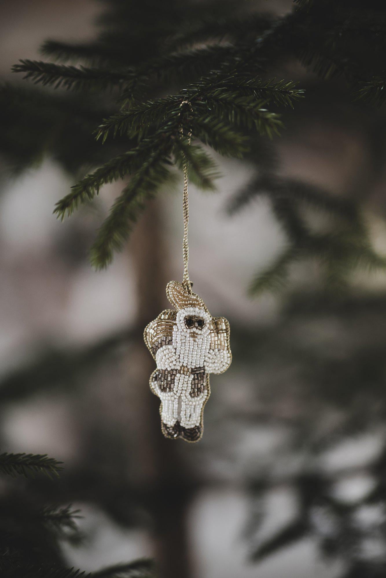 Ge din julgran en glittrande och personlig touch med detta handbroderade julgranshänge i form av en tomte. Varje detalj på denna unika juldekoration är noggrant broderad för hand med glaspärlor på båda sidor, vilket ger den en vacker och elegant glans. Denna exklusiva julgransdekoration är mer än bara en dekor - det är ett konstverk som fångar julens anda med sin värme och design. Perfekt för att skapa en mysig och glittrande julstämning, kommer detta julgranshänge att bli ett minnesvärt inslag i din gran varje år. En liten skatt som sätter guldkant på julgranen.