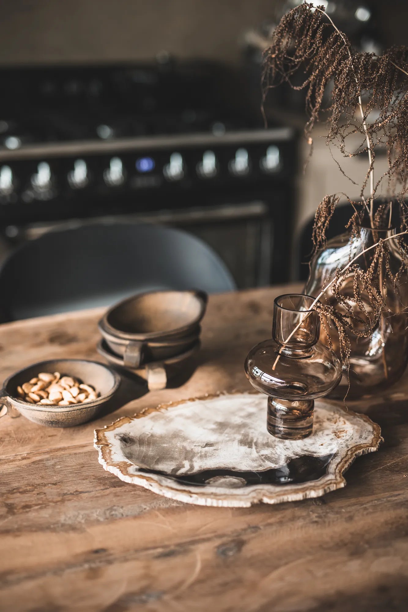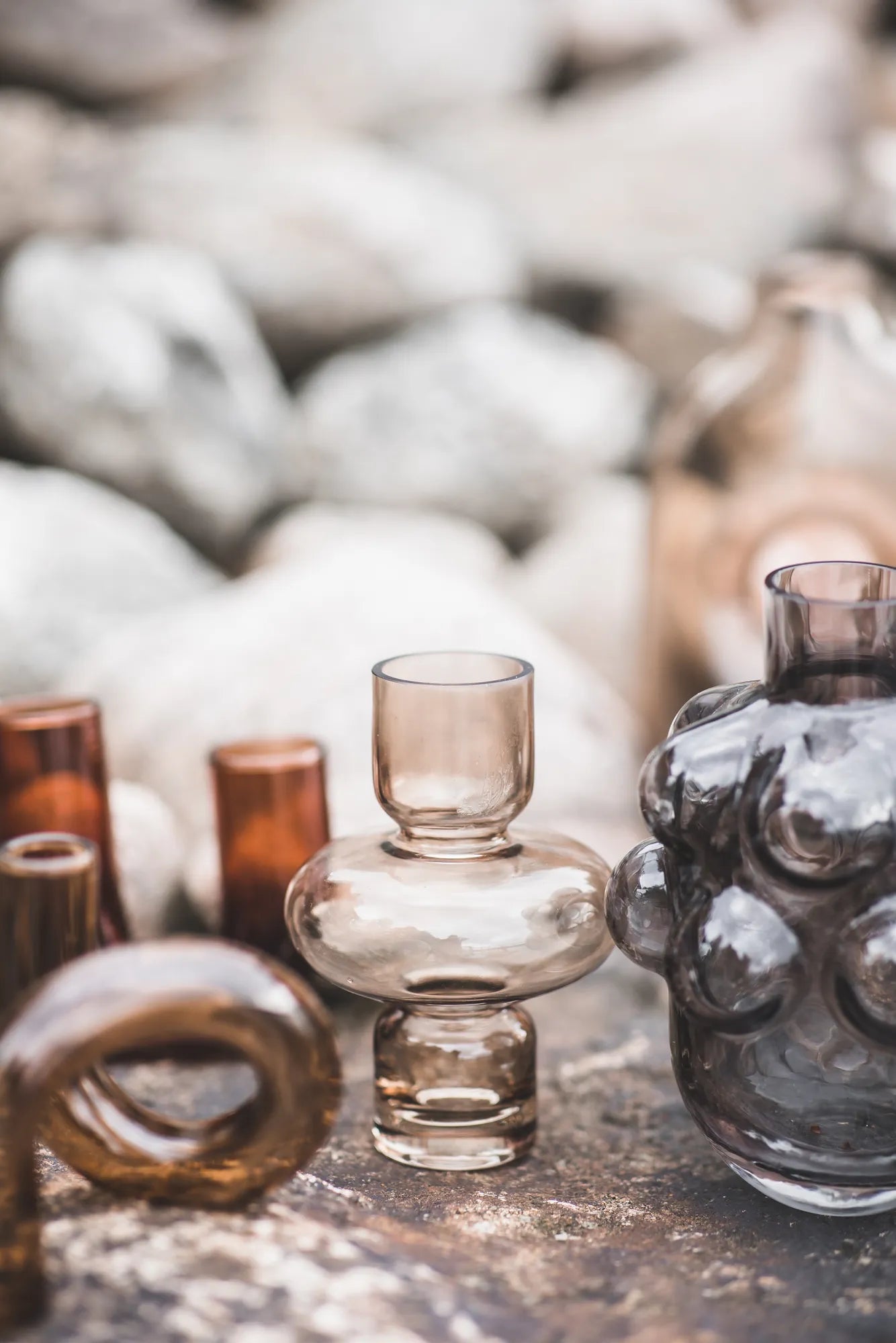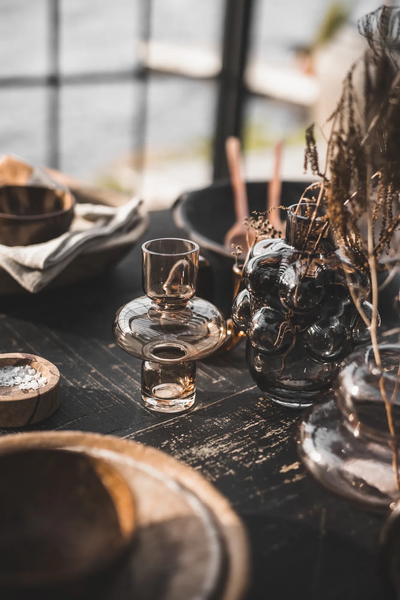 Tilly är en handgjord glasvas som direkt fångar uppmärksamheten med sin bubbliga och runda mittsektion, som ger den en lekfull och iögonfallande karaktär. Dess mjuka designspråk ger en förtrollande och harmonisk aura till varje rum där den placeras, vilket verkligen kommer göra Tilly till en favorit i din heminredning.
