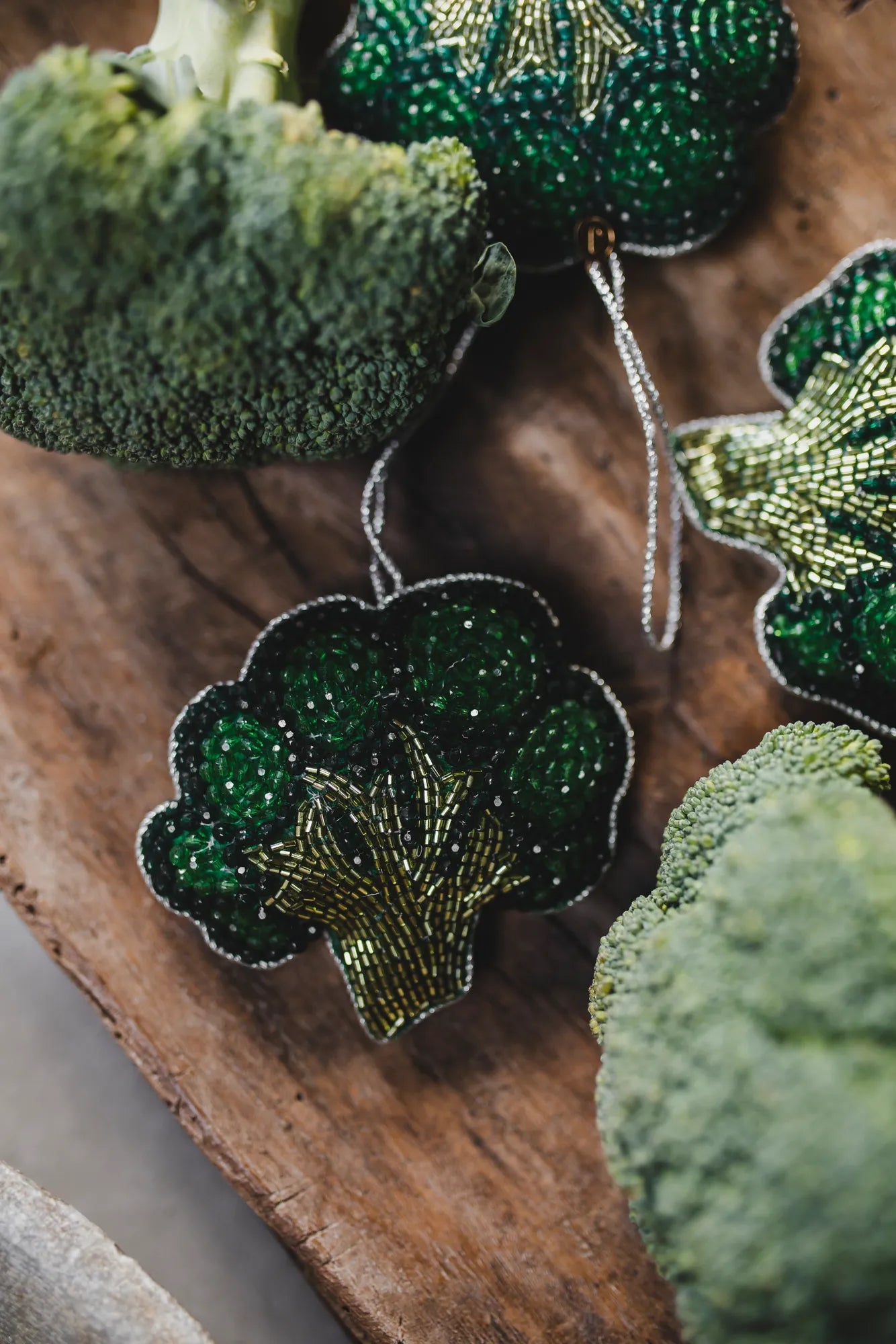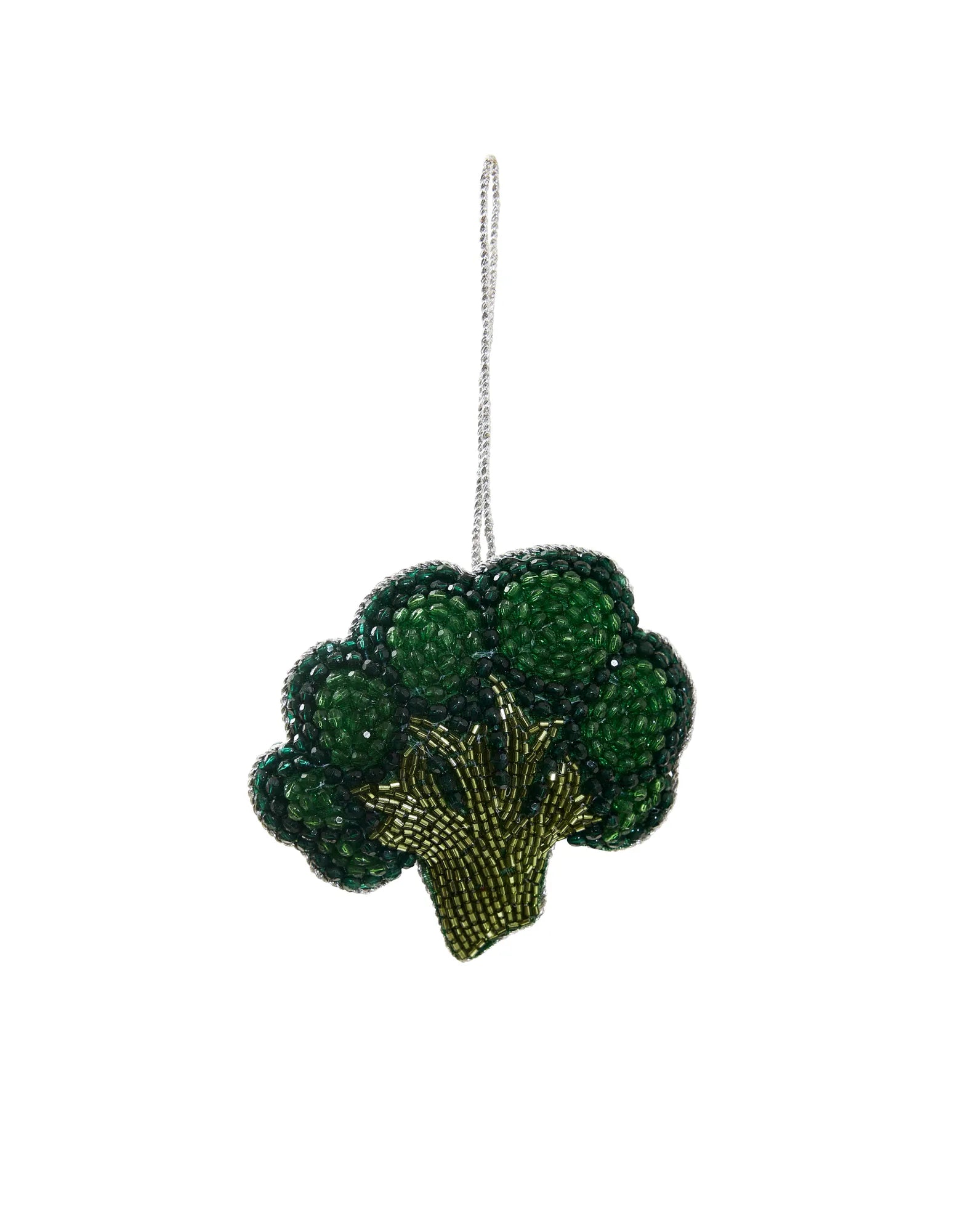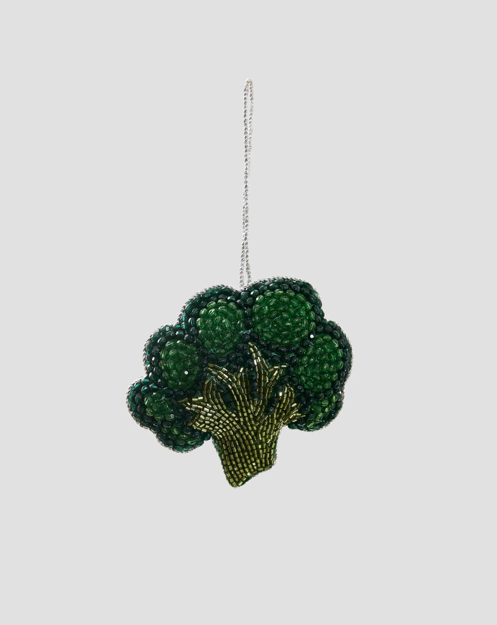 Give your Christmas tree a sparkling and personal touch with this hand-embroidered Christmas ornament in the shape of a brocolli. Every detail of this unique Christmas decoration is carefully hand-stitched with glass beads on both sides, giving it a beautiful and elegant shine. This exclusive ornament is more than just a decoration - it’s a piece of art that captures the spirit of Christmas with its warmth and design. Perfect for creating a cozy and glittering holiday atmosphere, this ornament will become a memorable feature in your tree each year. A little treasure that adds a touch of gold to your Christmas tree.