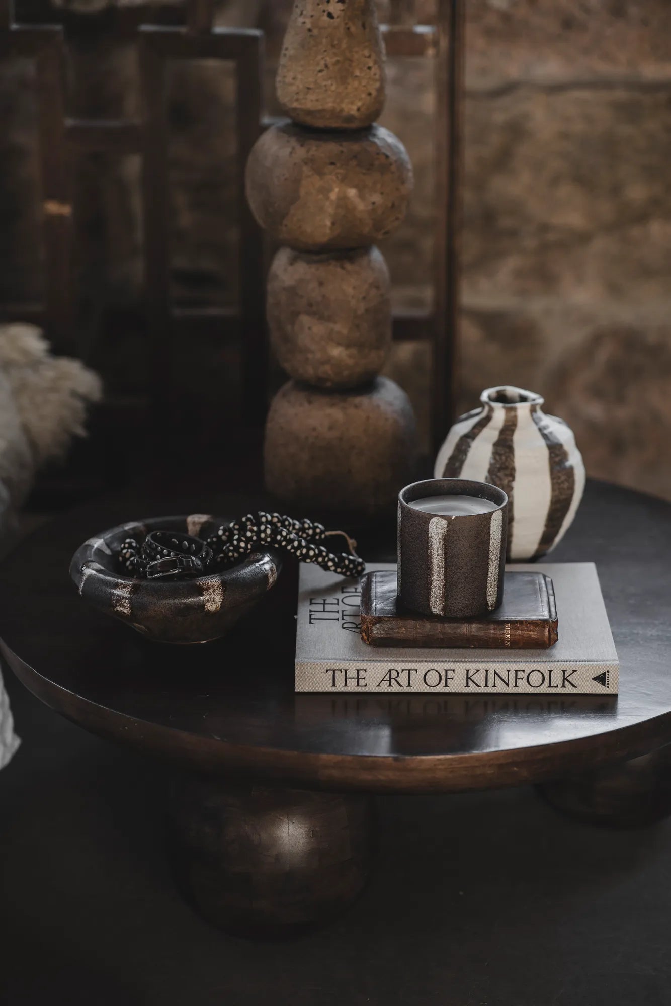Remi vanilla scented candle is a warming experience for both the senses and your decor. The scent of vanilla softly spreads, enveloping the room with its sweet, rich, and delightful aroma that creates an inviting and calming atmosphere. The container is made of stoneware, giving the candle a robust yet elegant feel. The hand-painted reactive glaze’s unique characteristics make each candle an individual artistic creation. The variations in the glaze create beautiful, vibrant shades, making each candle a piece of art in itself. No two containers are alike, making Remi a fantastic detail in your home decor. Burn time: 85 h.