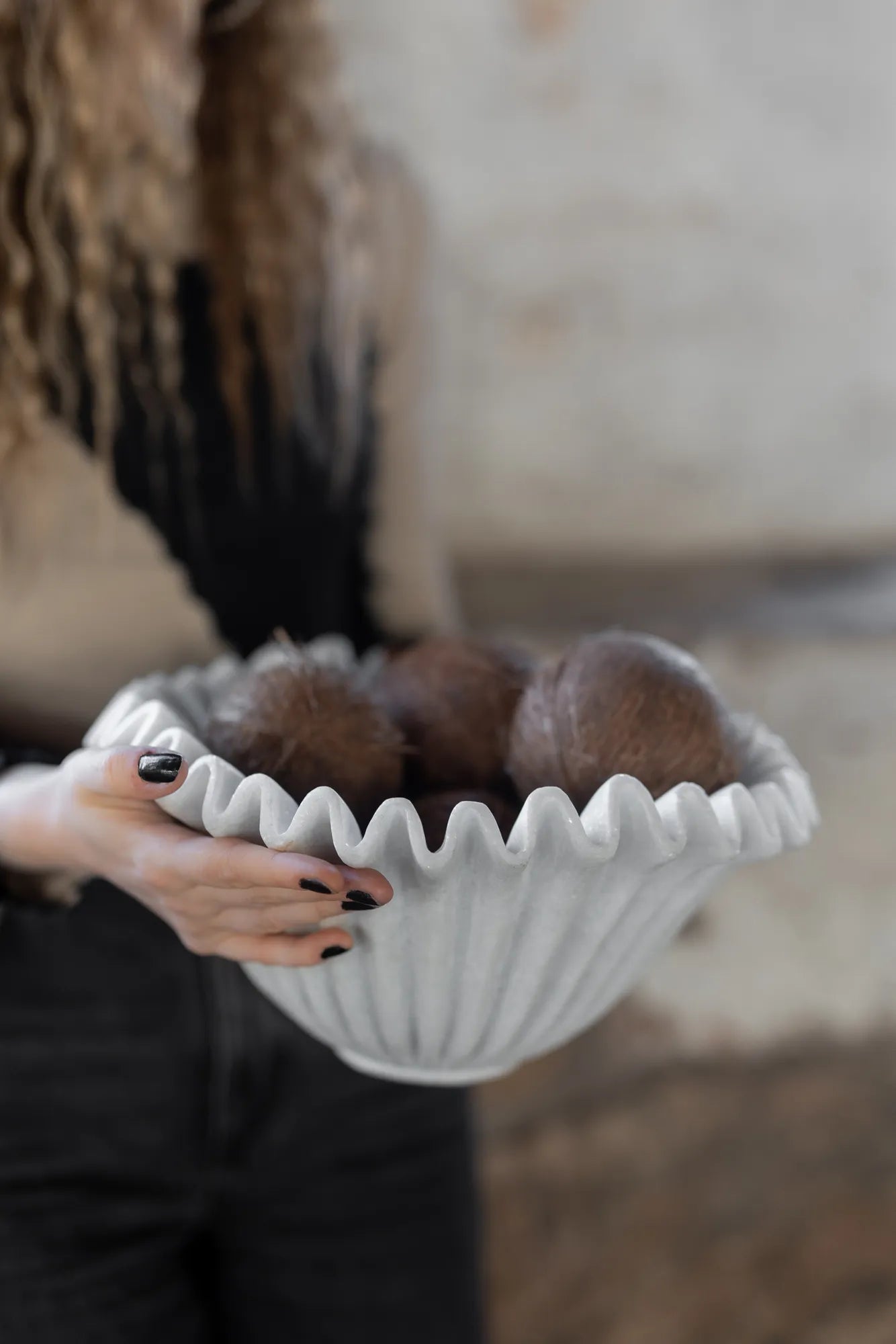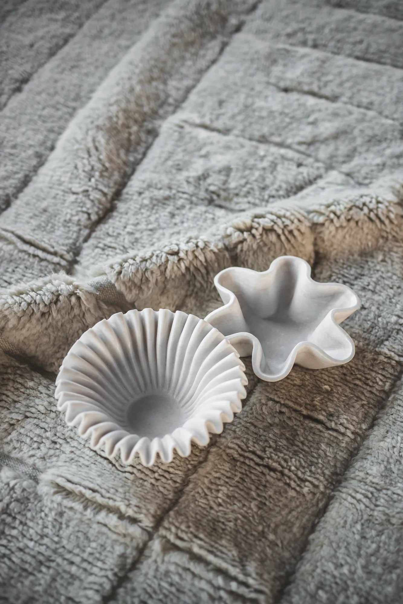 Anemone is a handcrafted marble bowl with a soft, sculptural design. The gently pleated edges give it an elegant character, making it as much a piece of art as a decorative object. Since each bowl is handmade from natural stone, every piece is truly unique - with its own veins, patterns, and subtle variations that make your Anemone one of a kind. The pure white marble enhances its expression, allowing the bowl to shine just as beautifully on its own as it does filled with small decorative treasures. Anemone is that little extra touch for your home - an elegant detail that catches the eye while telling a story of craftsmanship and the natural beauty of stone.