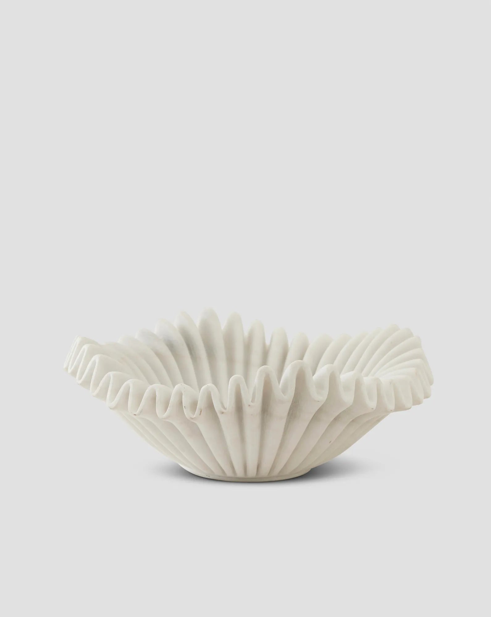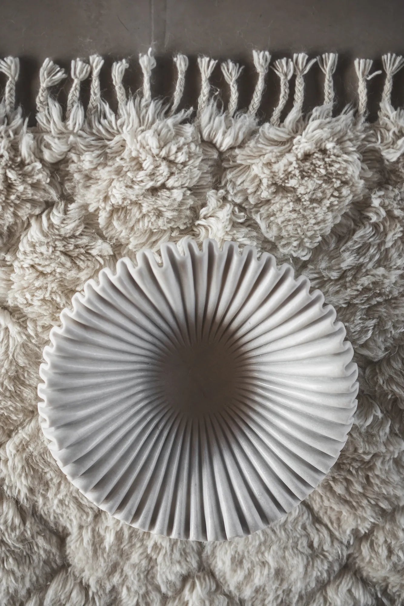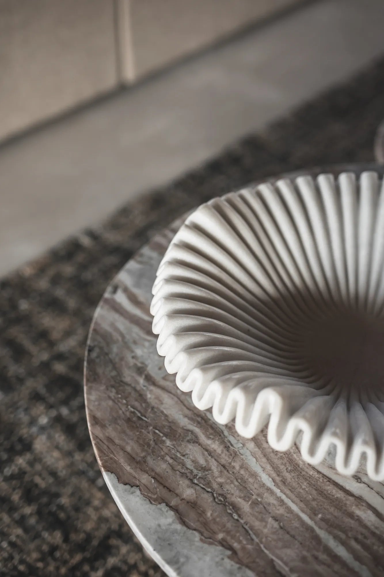 Anemone is a handcrafted marble bowl with a soft, sculptural design. The gently pleated edges give it an elegant character, making it as much a piece of art as a decorative object. Since each bowl is handmade from natural stone, every piece is truly unique - with its own veins, patterns, and subtle variations that make your Anemone one of a kind. The pure white marble enhances its expression, allowing the bowl to shine just as beautifully on its own as it does filled with small decorative treasures. Anemone is that little extra touch for your home - an elegant detail that catches the eye while telling a story of craftsmanship and the natural beauty of stone.