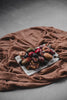 Mirja is a curled cloth in a polyester and linen blend.