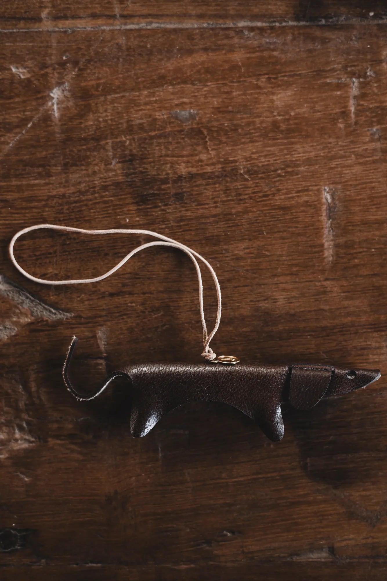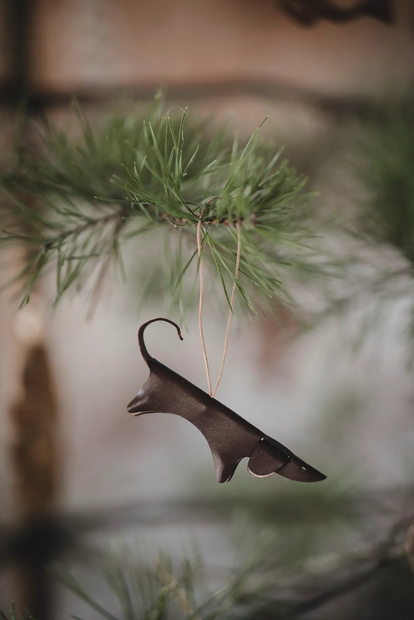 Give your Christmas tree a unique and stylish touch with this leather Christmas ornament. Shaped like a dachshund, with beautiful leather details, it adds a tough and modern twist to the traditional bauble. This exclusive ornament is more than just a Christmas decoration - it’s an artistic and sustainable adornment that brings both design and personality to your tree. Perfect for those who want something different while creating a cozy holiday atmosphere.