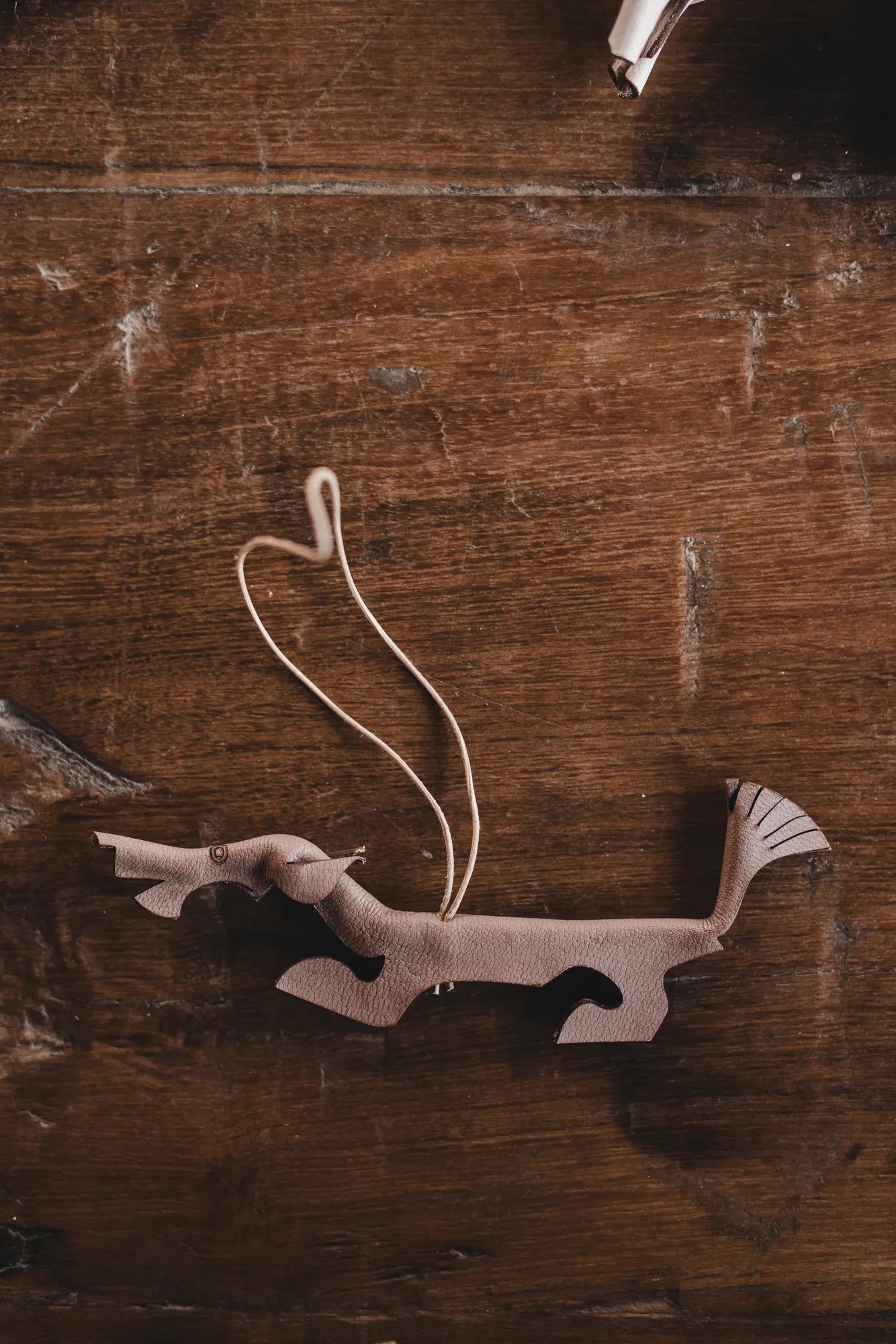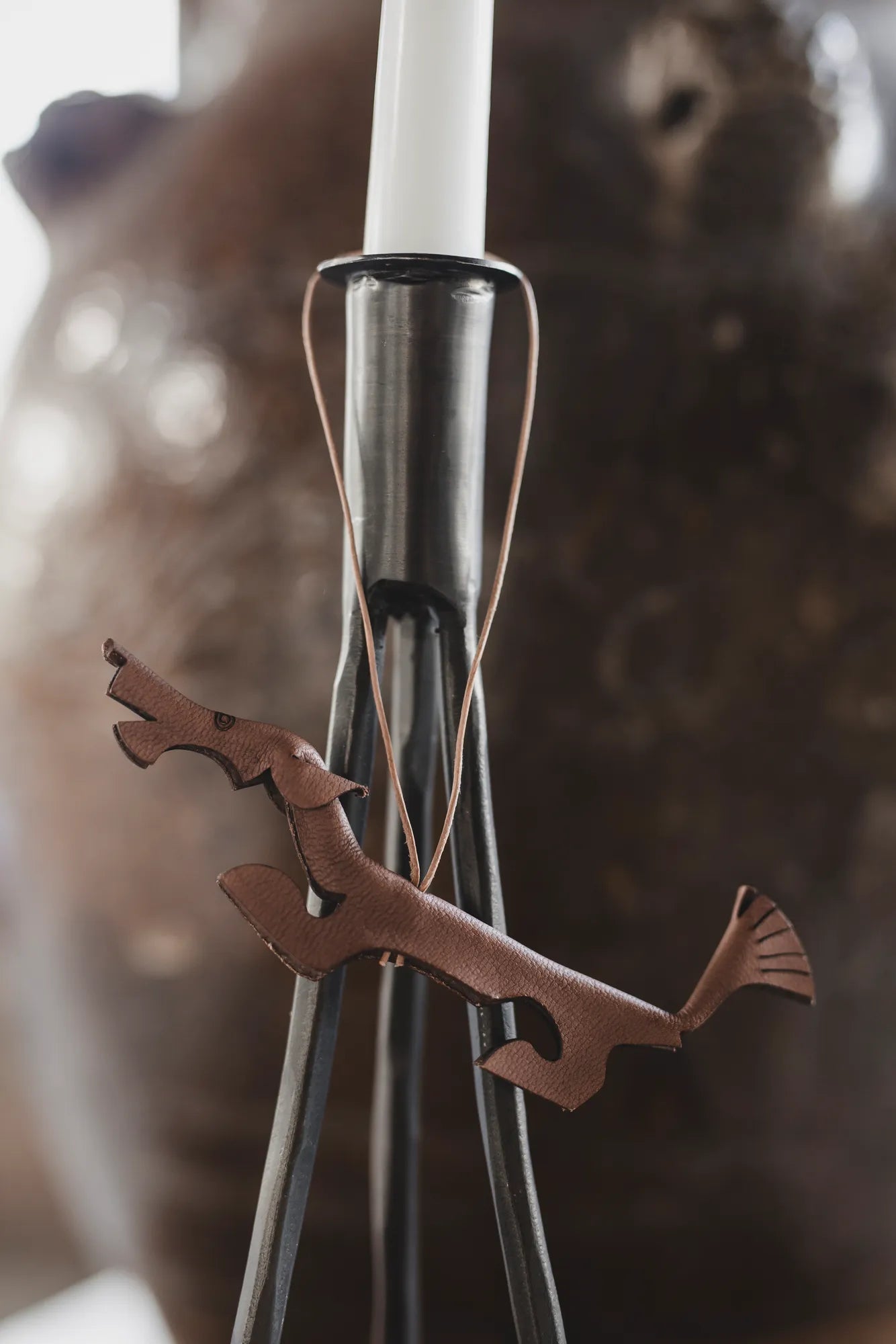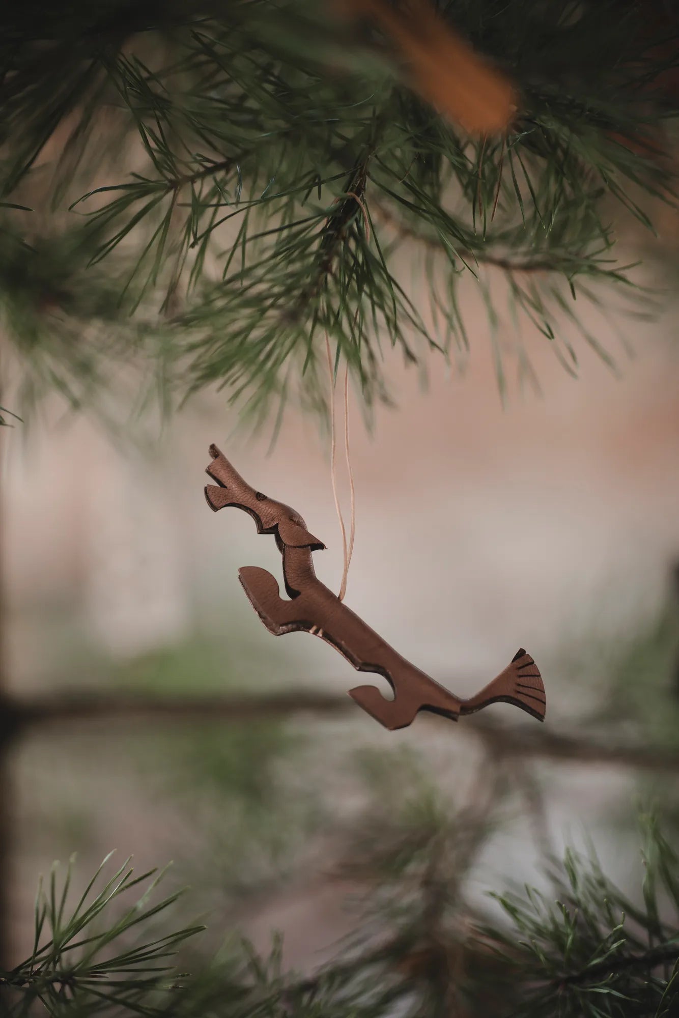 Give your Christmas tree a unique and stylish touch with this leather Christmas ornament. Shaped like a fox, with beautiful leather details, it adds a tough and modern twist to the traditional bauble. This exclusive ornament is more than just a Christmas decoration – it’s an artistic and sustainable adornment that brings both design and personality to your tree. Perfect for those who want something different while creating a cozy holiday atmosphere.