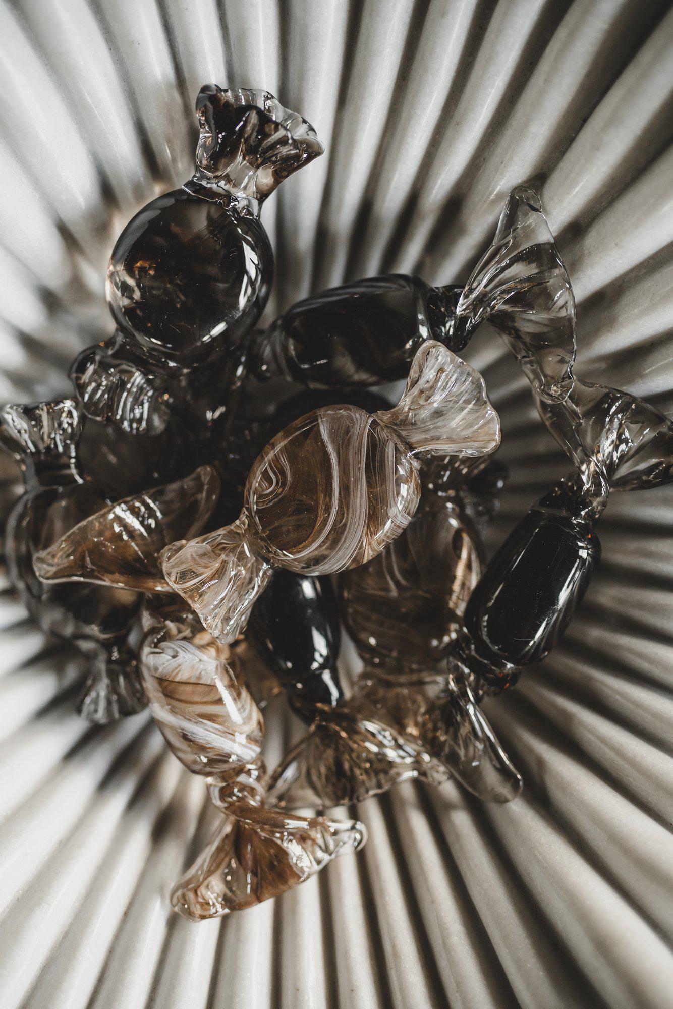 This hand-blown ornament in glossy brown tones is like a caramel for the eyes, a captivating little detail that spreads warmth and playful charm in any room. With its beautiful, marble-like surface and gentle form, Toffee becomes an irresistible decoration reminiscent of sweet caramels, but in an elegant and artistic rendition. The hand-blown technique makes each Toffee unique, and the soft transition between the brown tones gives a sense of both warmth and elegance. The playful shape invites creativity and adds a surprising touch to your décor. Imagine placing several Toffee ornaments together in a bowl for an exquisite and playful feel, or let them stand alone on a shelf to create a stylish eye-catching accent.