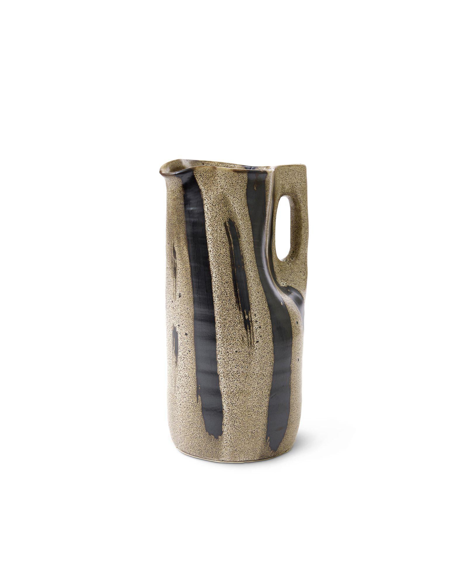 Discover the Tulip pitcher, an elegant and timeless serving piece that combines the best of minimalist design and natural beauty. Made from stoneware and coated with reactive glaze, each pitcher boasts a unique finish. The reactive glaze creates subtle color variations, making every piece truly one-of-a-kind and transforming each pitcher into a small work of art. No two pitchers are alike - every detail, every shift in color, is the result of handcrafted craftsmanship, giving it a vibrant and personal touch. With its softly striped pattern and earthy tones, the Tulip pitcher conveys warmth and simplicity, making it the perfect fit for both modern and more traditional interiors. The minimalistic design highlights the natural beauty of the stoneware, adding a sleek, timeless touch to every meal. Its subtle, rounded shapes and harmonious lines make Tulip both a beautiful and functional detail, perfect for any occasion.
