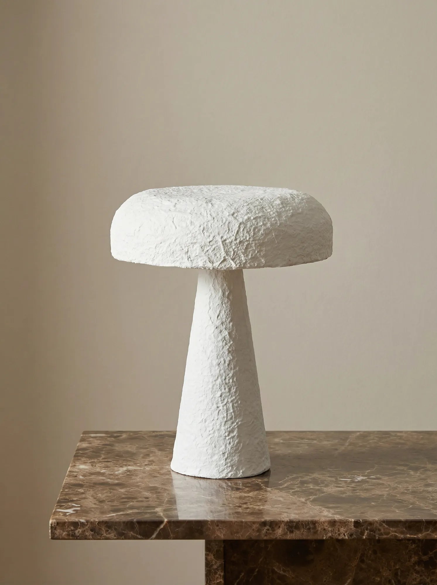 Låt ditt hem lysa upp med personlighet! Luma är en charmig bordslampa formad som en stilren svamp - skapad i handgjord papier-maché som ger varje exemplar en egen karaktär. Den matta, mjuka ytan sprider ett varmt och behagligt sken, perfekt för att skapa mysig stämning i vardagsrummet, på nattduksbordet eller i hallen. Med sin skulpturala form blir Luma lika mycket konstverk som ljuskälla - en vacker liten detalj som gör stor skillnad i rummet. Specifikationer: Sladdlängd: 200 cm, Sockeltyp: E27, Max: 25W, Spänning: 220–240V, 50 Hz. Då lampan är gjord i papier-maché tål den inte vatten och ska endast rengöras med en dammvippa eller en fuktig trasa.