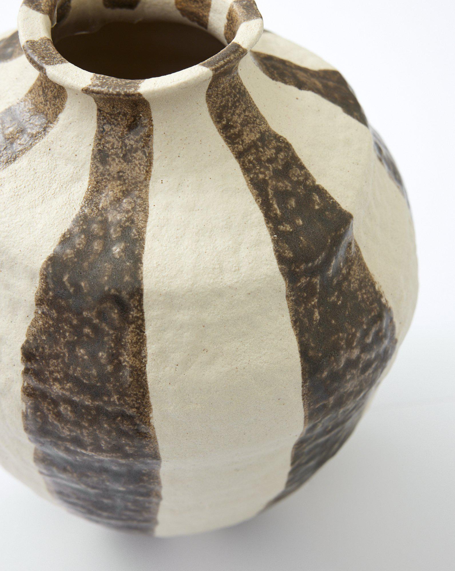 Ge ditt hem ett inslag av både elegans och lekfullhet med vår randiga Raia-vas - en detalj som förvandlar vilket rum som helst. Med sina mjuka, abstrakta former skapar denna vas en känsla av rörelse och liv, samtidigt som de tidlösa ränderna ger en känsla av klassisk stil. Placera vasen på ett bord eller en hylla och låt den bli en vacker inredningsdetalj. Oavsett om den står ensam eller i en grupp, tillför den en lekfull elegans som lyfter hela rummet. Den är lika vacker i sitt enkla uttryck som när den får fyllas med blommor och sprida färg och liv i din vardag.